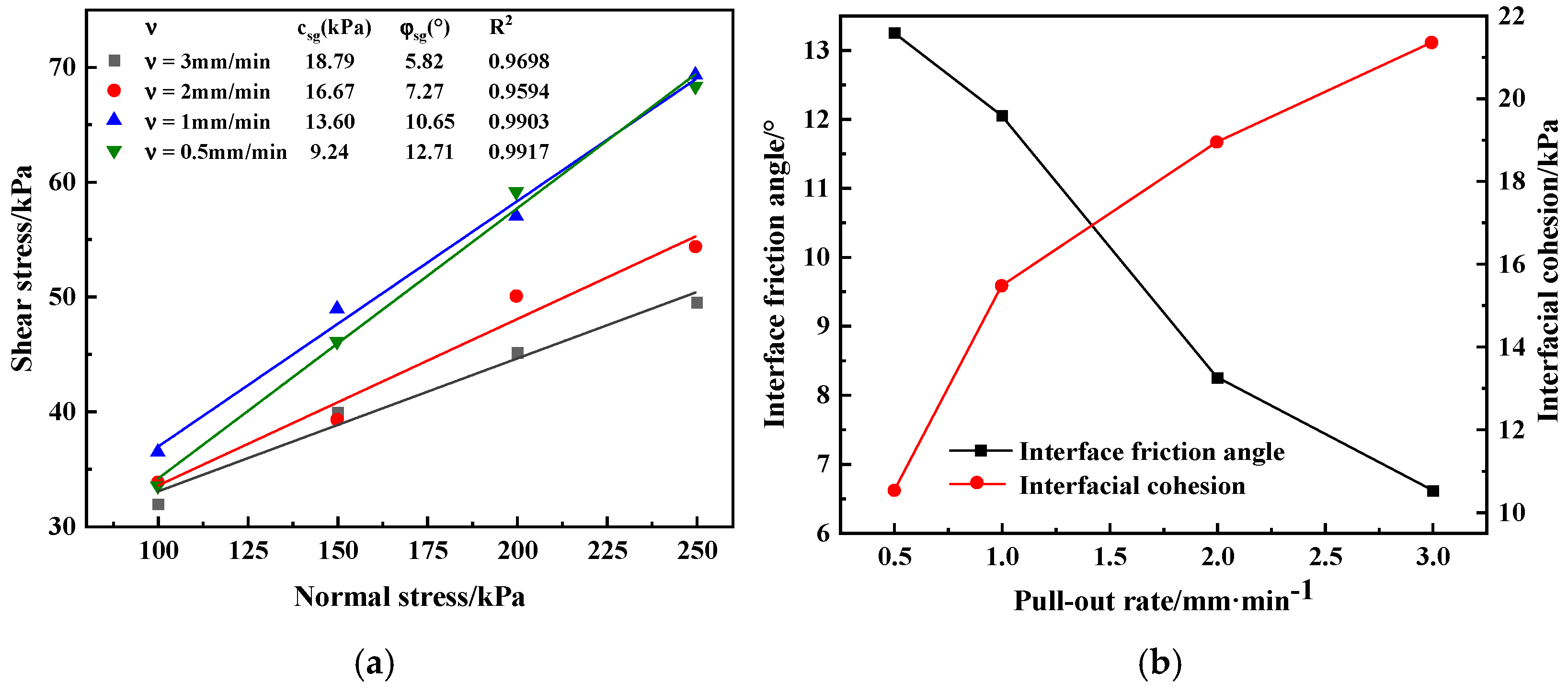 - Liu, J.; Pan, J.; Liu, Q.; Xu, Y. Experimental study on the interface characteristics of geogrid-reinforced gravelly soil based on pull-out tests. Sci. Rep. 2024, 14, 8669. [Google Scholar] [CrossRef]