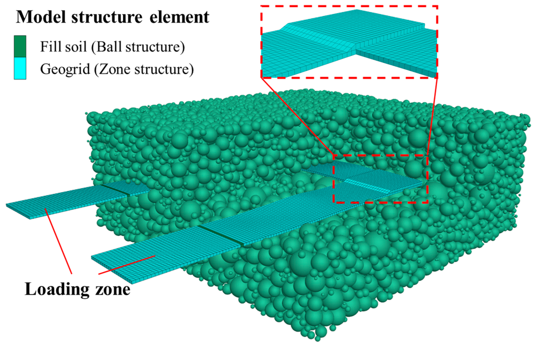 - Fu, J.; Li, J.; Chen, C.; Rui, R. Dem-fdm coupled numerical study on the reinforcement of biaxial and triaxial geogrid using pullout test. Appl. Sci. 2021, 11, 9001. [Google Scholar] [CrossRef]