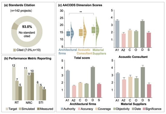 RQ3 (Evidence quality): How reliable is this practice-based evidence, and what gaps exist in performance data? This question evaluates the methodological quality and information completeness of grey literature by examining (a) the distribution of evidence quality ratings based on the AACODS framework; (b) the extent to which projects report quantitative acoustic indicators (e.g., reverberation time, NC, Speech Transmission Index (STI)) rather than only qualitative descriptions; and (c) quality differences across source types.