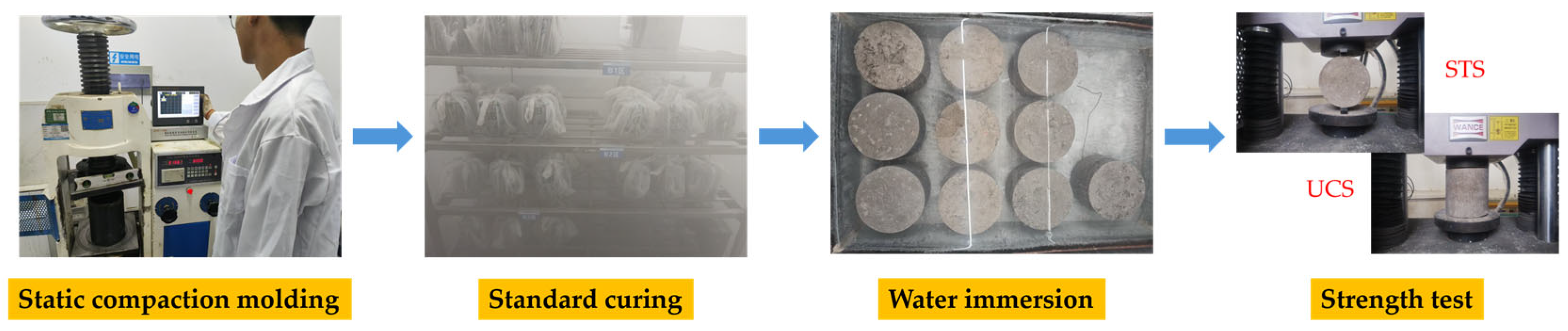 - JTG E51; Test Methods of Materials Stabilized with Inorganic Binders for Highway Engineering. Beijing COC Tech Co., Ltd.: Beijing, China, 2009.