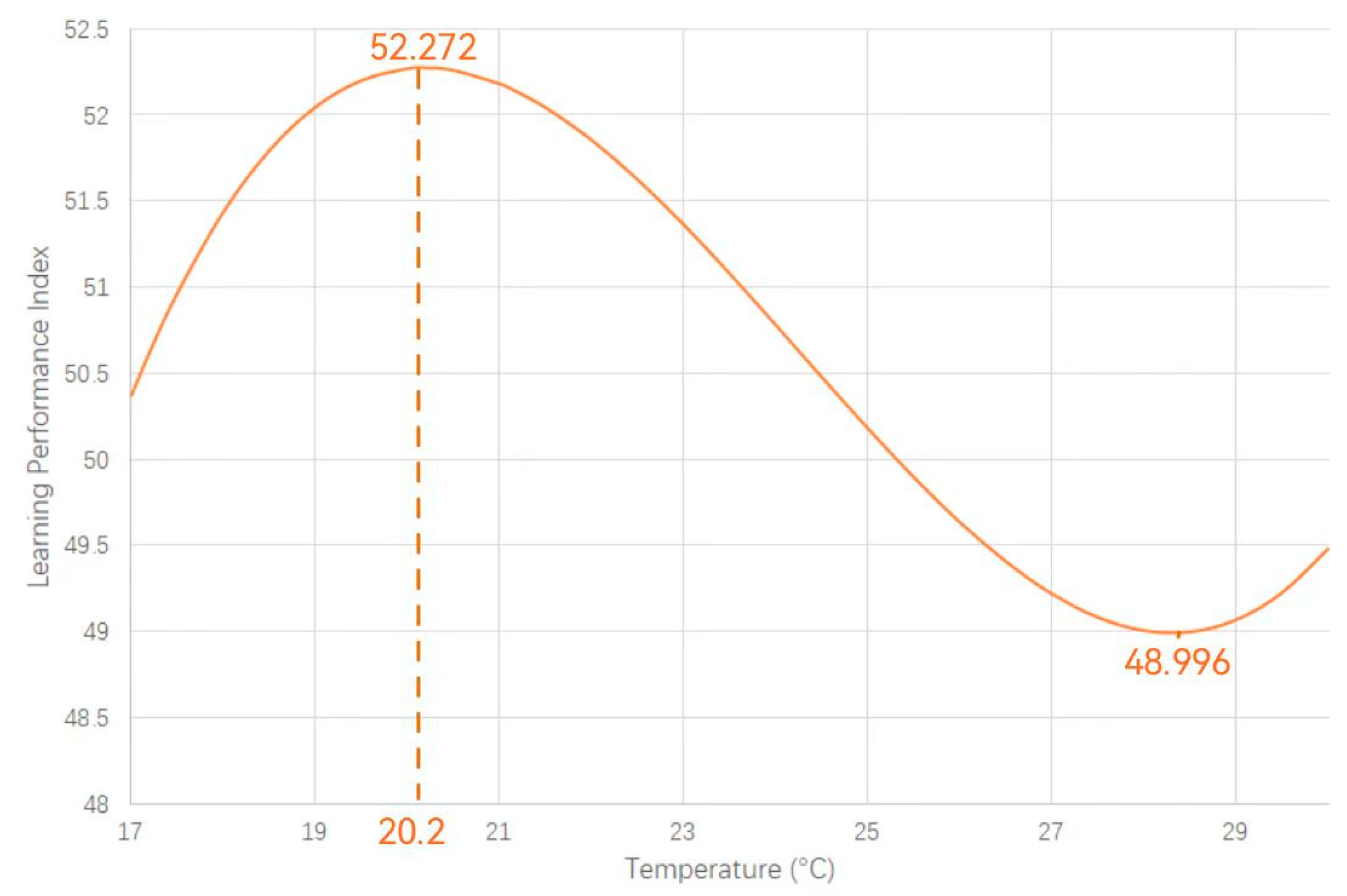 - The analysis shows that the optimal thermal comfort temperature corresponds to 24 °C, while the optimal learning efficiency temperature is 20.2 °C, with a temperature difference of 3.8 °C. A comprehensive comparison reveals that university students exhibit better learning efficiency in slightly cooler environments.