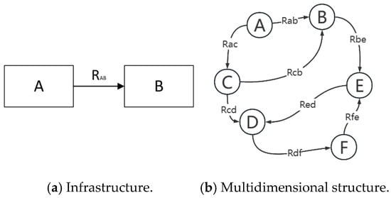 The semantic network model is a graph—a theoretic knowledge representation framework devised to emulate human cognitive patterns, decision-making processes, and conceptual comprehension mechanisms. The nascent concept of semantic networks emerged as early as the onset of the 20th century. Charles S. Peirce proposed a structural representation approach characterized by nodes and chains [14]. By 1968, M. R. Quillan further advanced semantic networks as a framework for comprehensively explicating human cognitive processes [15]. The structural diagram is presented in Figure 2. Comprising two core elements—semantics (the profound connotations of linguistic symbols) and network topology (a structure composed of nodes and edges)—this theoretical model transforms research subjects into node sets and maps conceptual relationships as edge sets. By dynamically adjusting node–edge mappings, it characterizes object attributes and enables the flexible reconstruction of research elements and their interconnections in accordance with specific requirements.