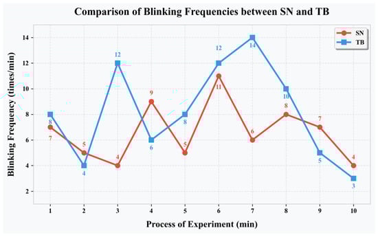 The SN group maintained low blink frequency and sustained pupil dilation, which correlates with their self-reported engagement in cross-domain knowledge integration. However, blink rate is context-dependent—low blinking could also reflect reduced visual scanning rather than deep thinking. We strengthened the interpretation by noting that this pattern coincided with participants’ reports of “connecting non-architectural knowledge to the design task” and a higher proportion of cross-domain nodes in their semantic networks [51].