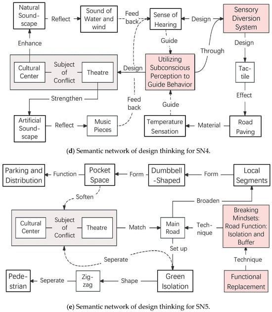 - Traceable Thinking for Human–AI Interaction: SN’s explicit node relationship chains (e.g., “road width constraint → dynamic lane allocation solution”) record the evolution of design thinking. When AIGC generates initial schemes, designers can use SN to trace the logical connections between AI-generated elements, modify conflicting nodes, and optimize solution paths, overcoming the “black-box” limitation of AIGC.
