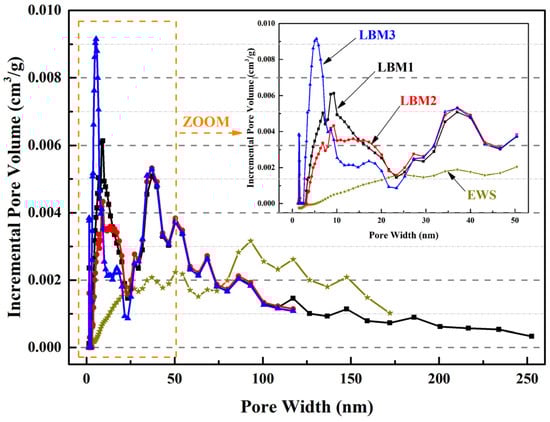 BET results of pore width about incremental pore volume of LBM and EWS samples.