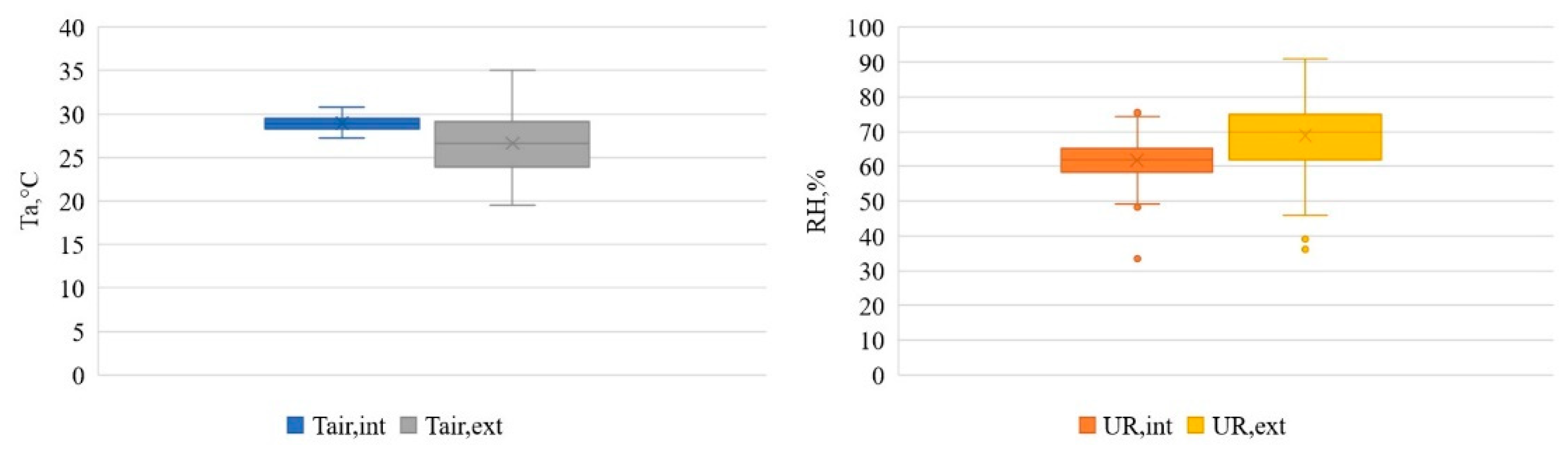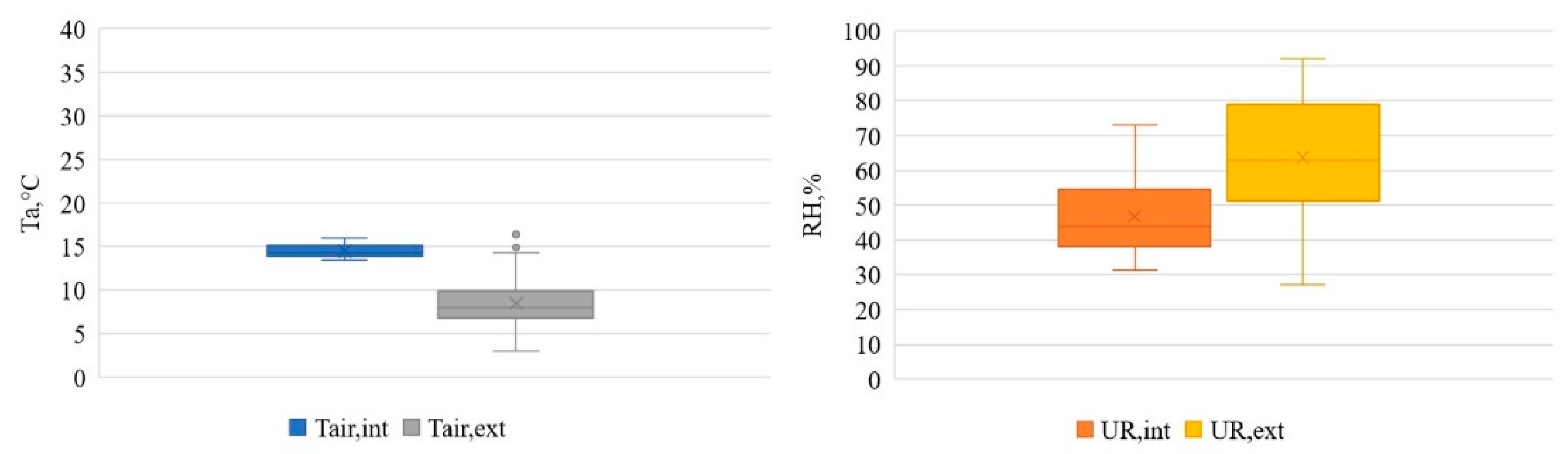 | Ta (°C) | ΔTamax (°C) | RH (%) | ΔRHmax (%) | CO2 (ppm) | PM2.5,24h (µg/m3) | PM10,24h (µg/m3) | |