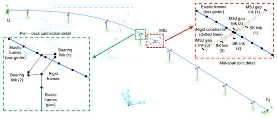 Moreover, link elements with gap behaviour were placed at deck joints to model pounding between adjacent members. In particular, three gap links (at the left, middle and right side of each deck cross-section) with a 0.15 m opening, zero initial stiffness and rigid behaviour after gap closure were placed at the initial joint at the mid-span central joint and at the final joint.