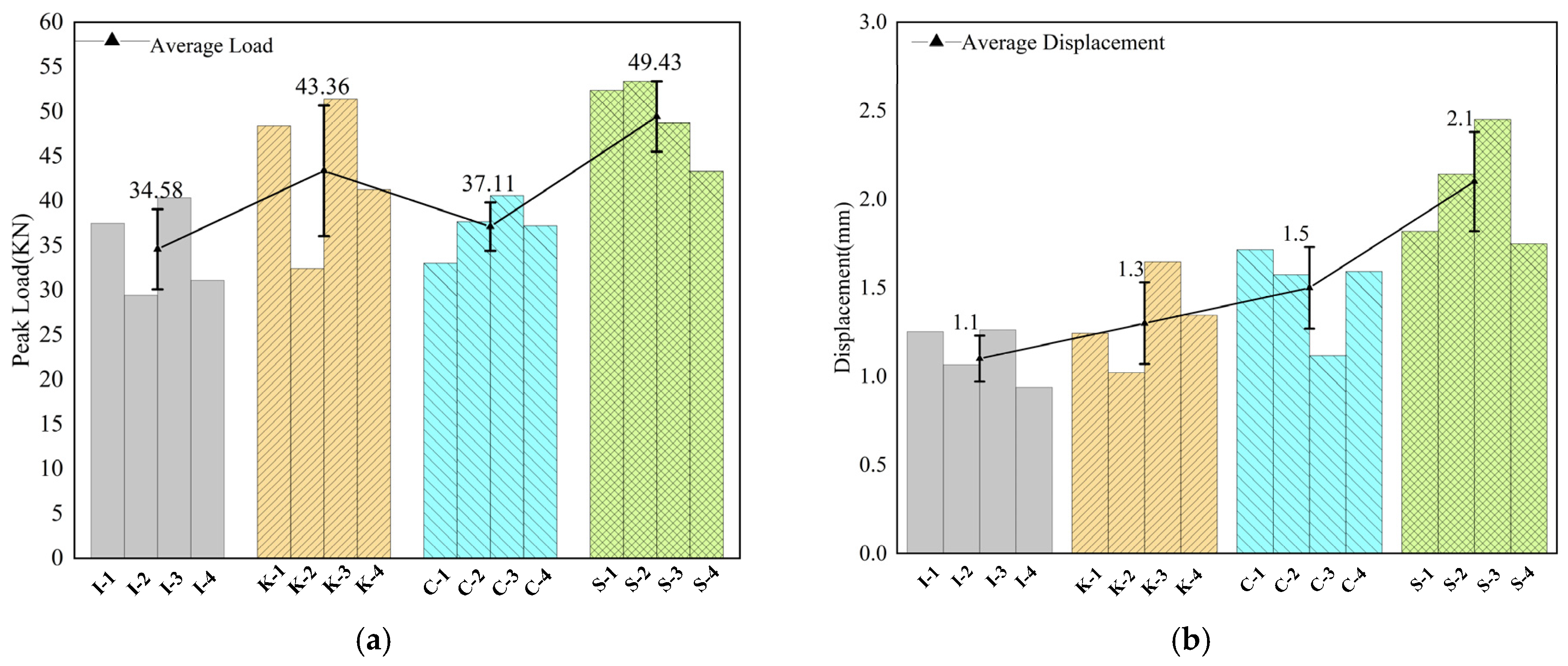 3.1.1. Peak Load and Corresponding Displacement at Peak Load