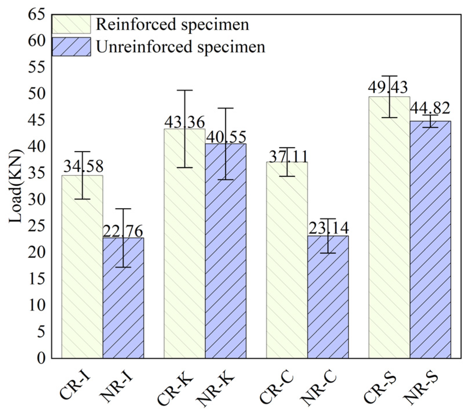 3.3. Comparative Analysis of Reinforced and Non-Reinforced Specimens