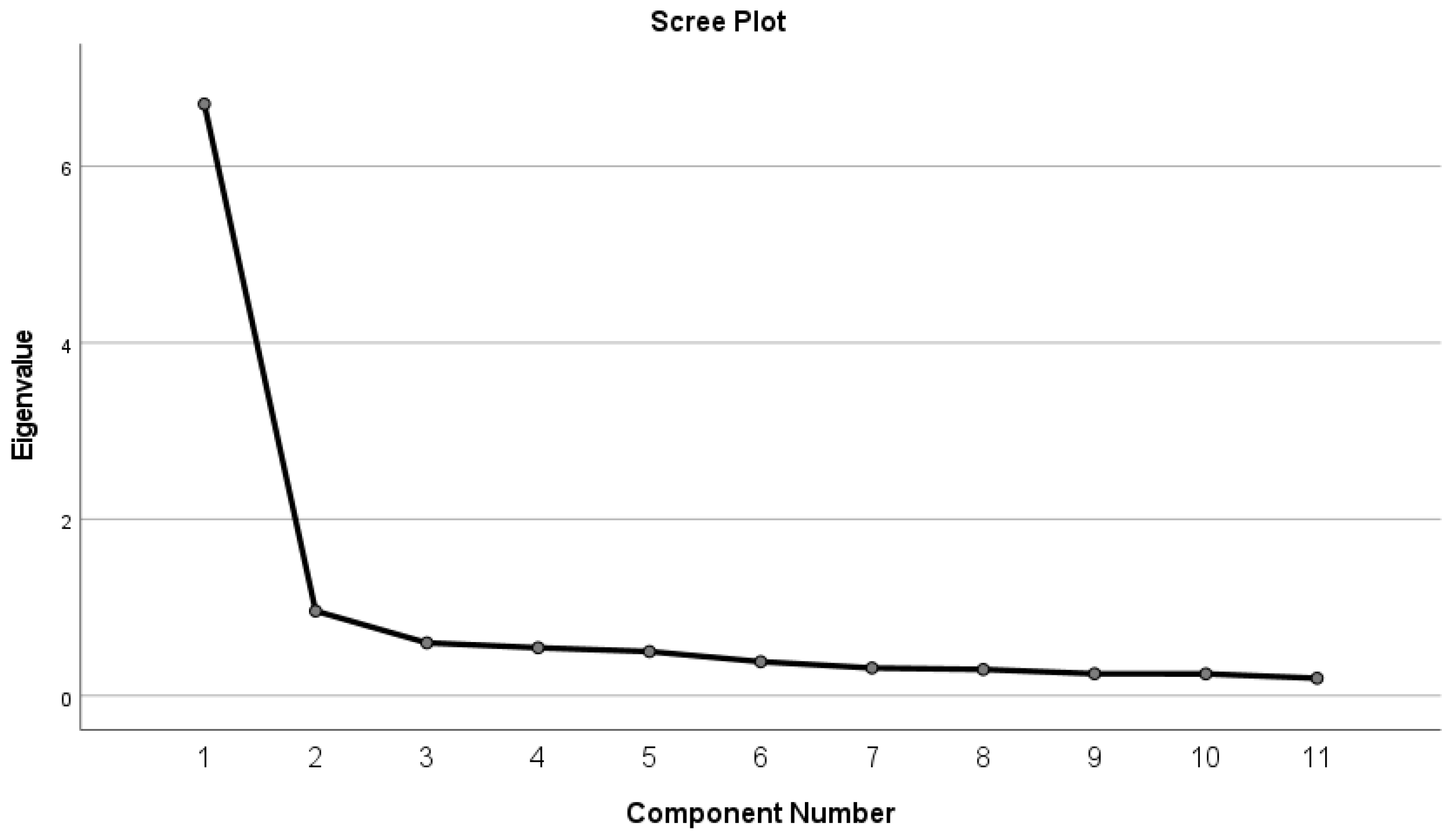 Figure 1 provides an illustrative overview of the factor structure, followed by a sharp drop, indicating a unidimensional structure. This suggests that the 11 items measure a single construct, the perceived benefits of MR in concrete placement, confirming a unidimensional structure and suitability for exploratory regression analysis.