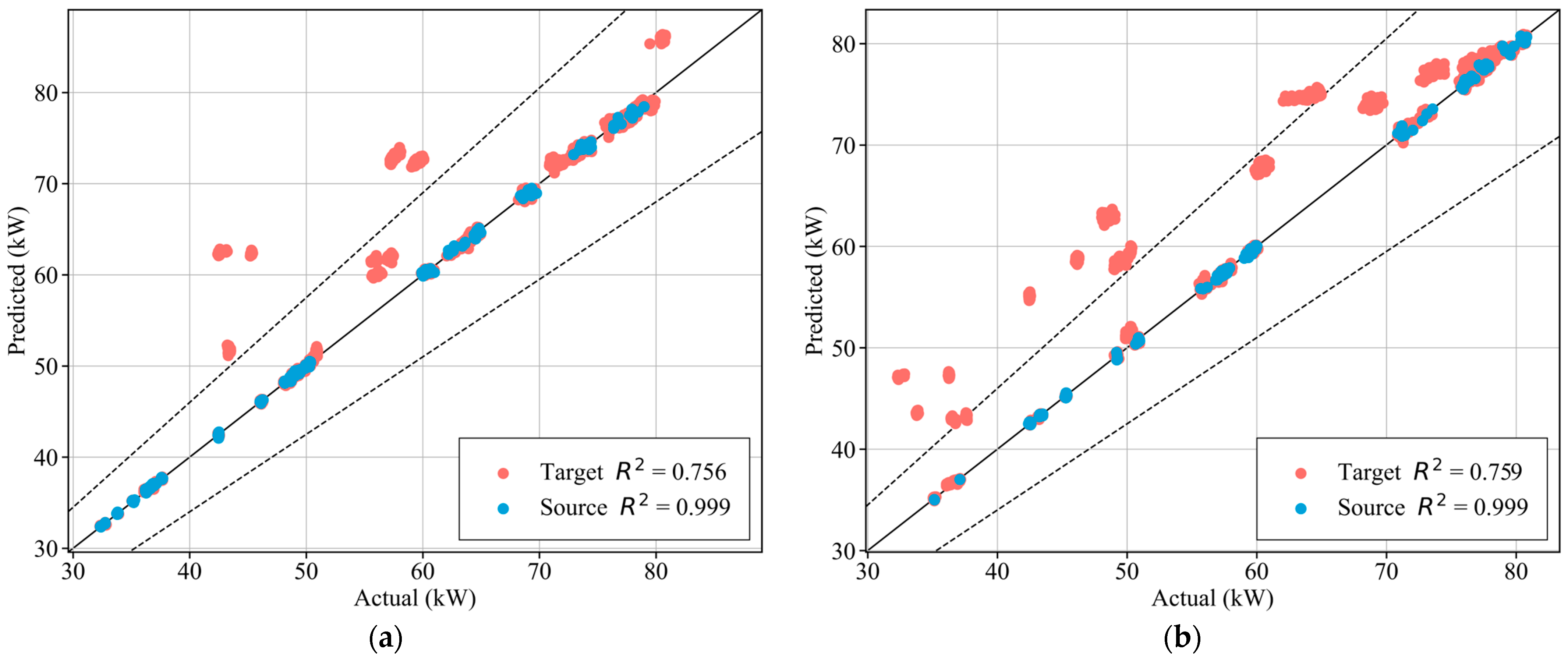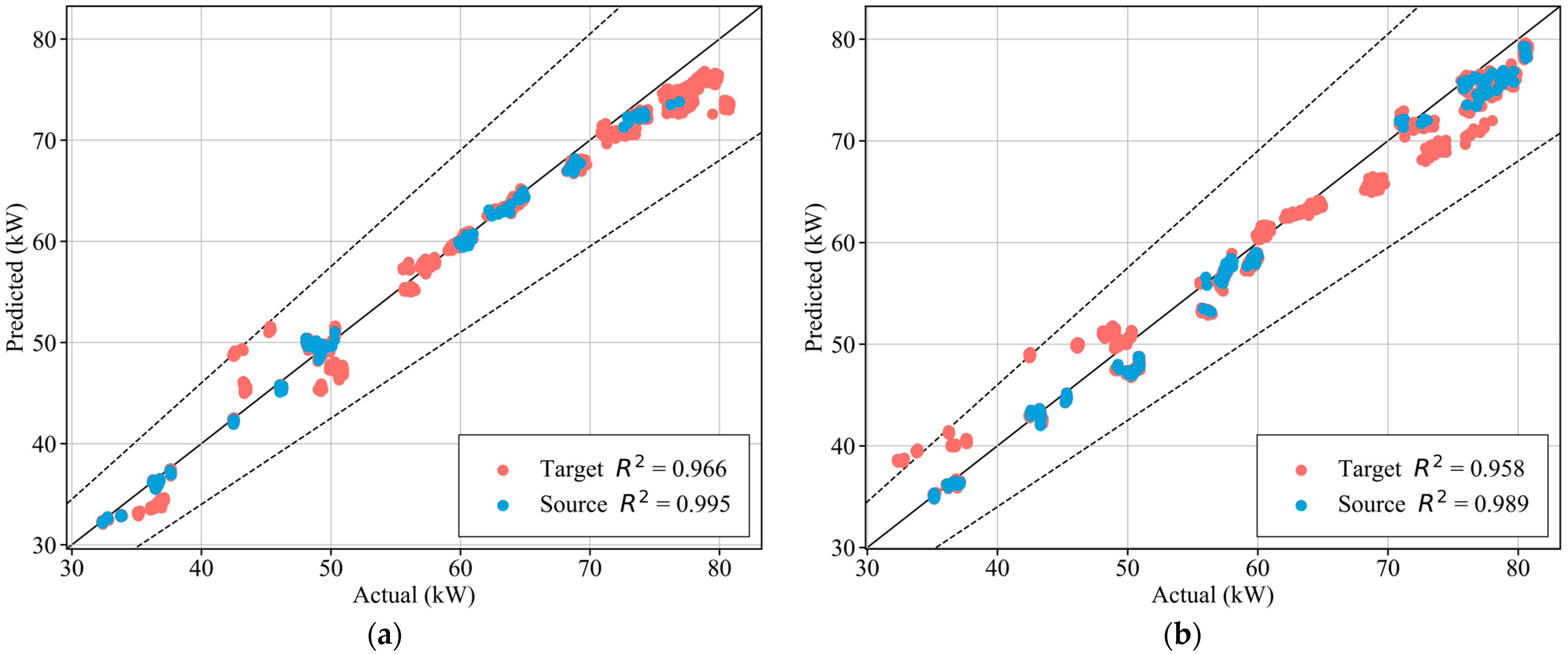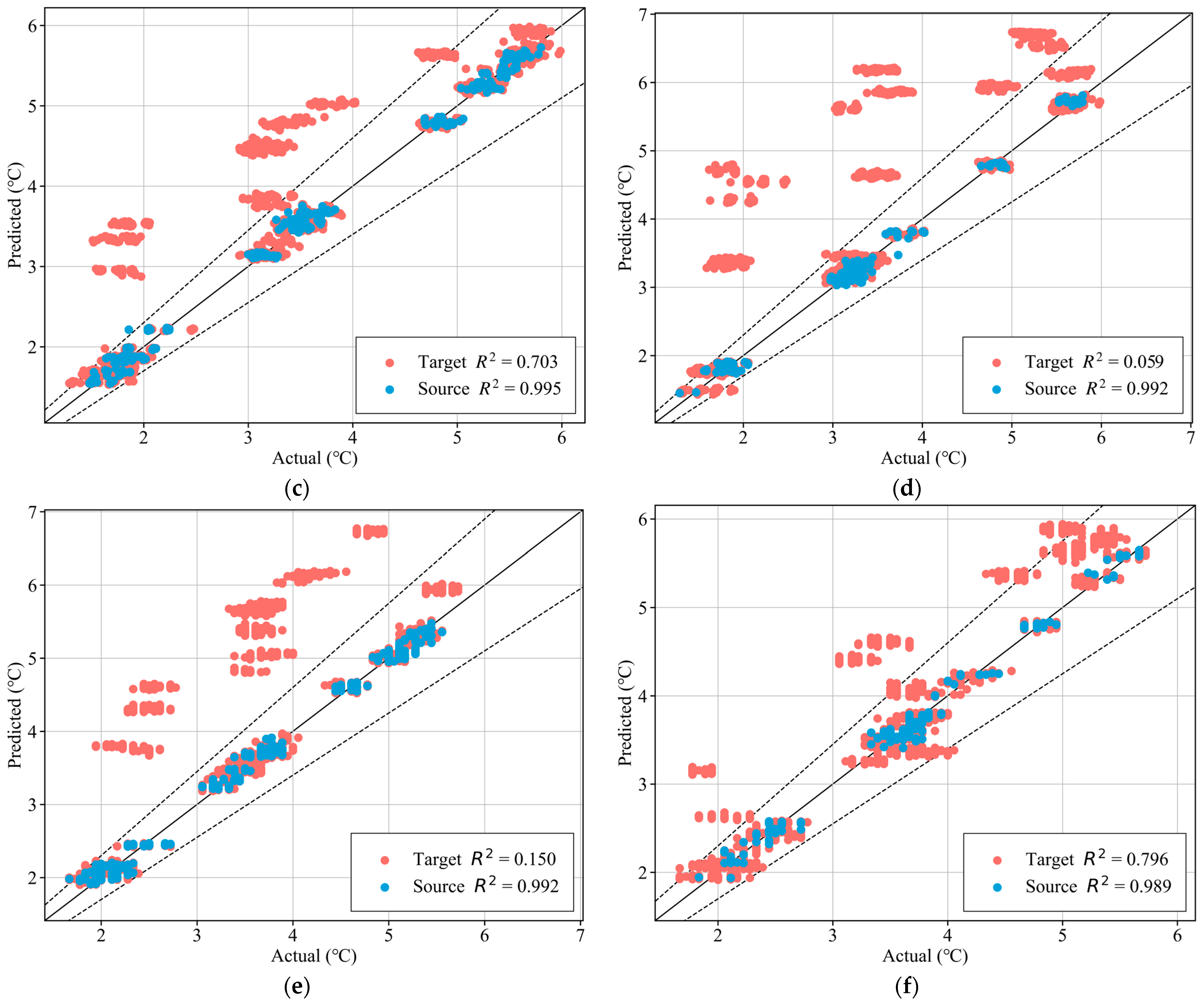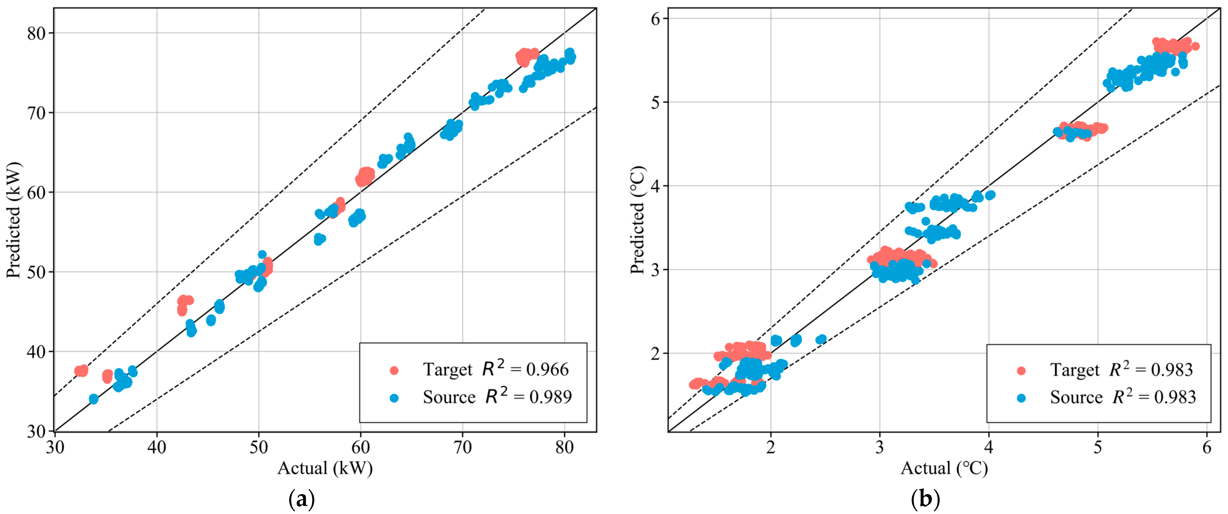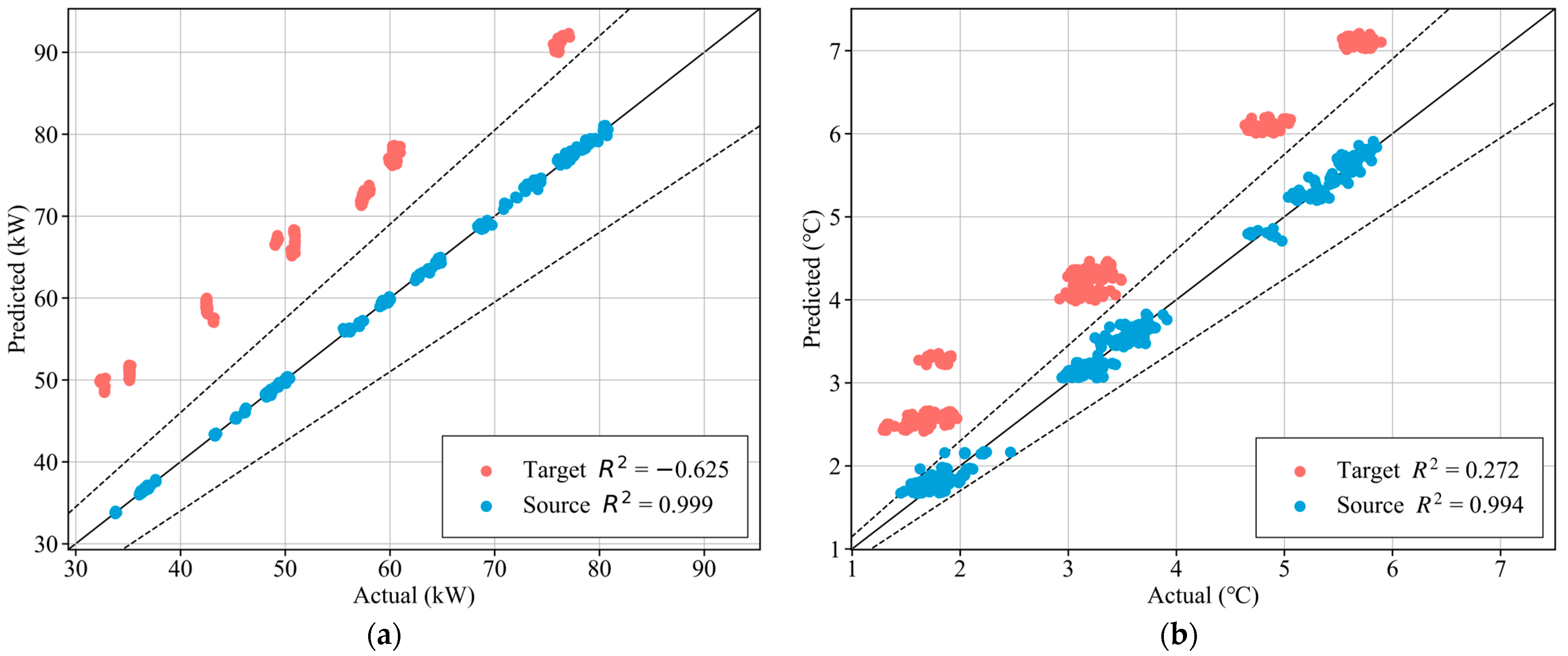 - Dou, H.; Zmeureanu, R. Transfer Learning Prediction Performance of Chillers for Neural Network Models. Energies 2023, 16, 7149. [Google Scholar] [CrossRef]