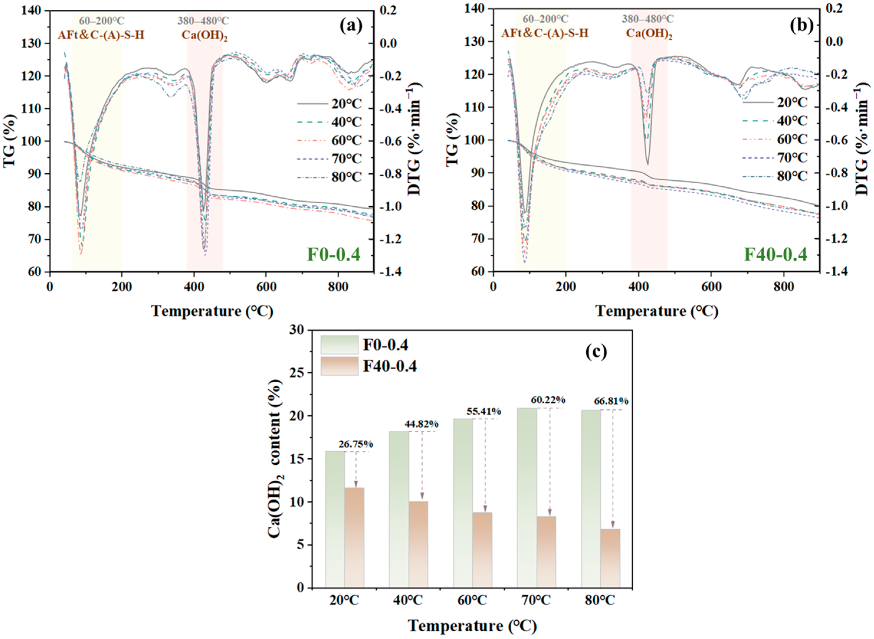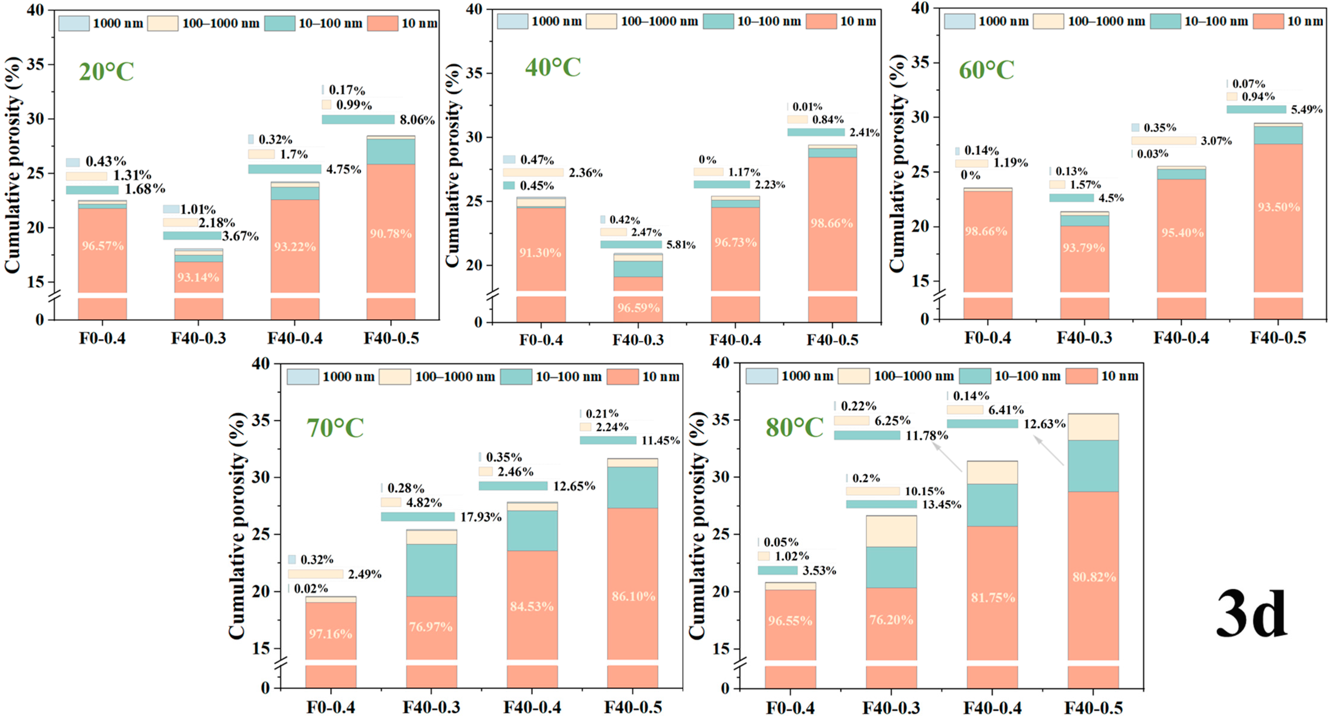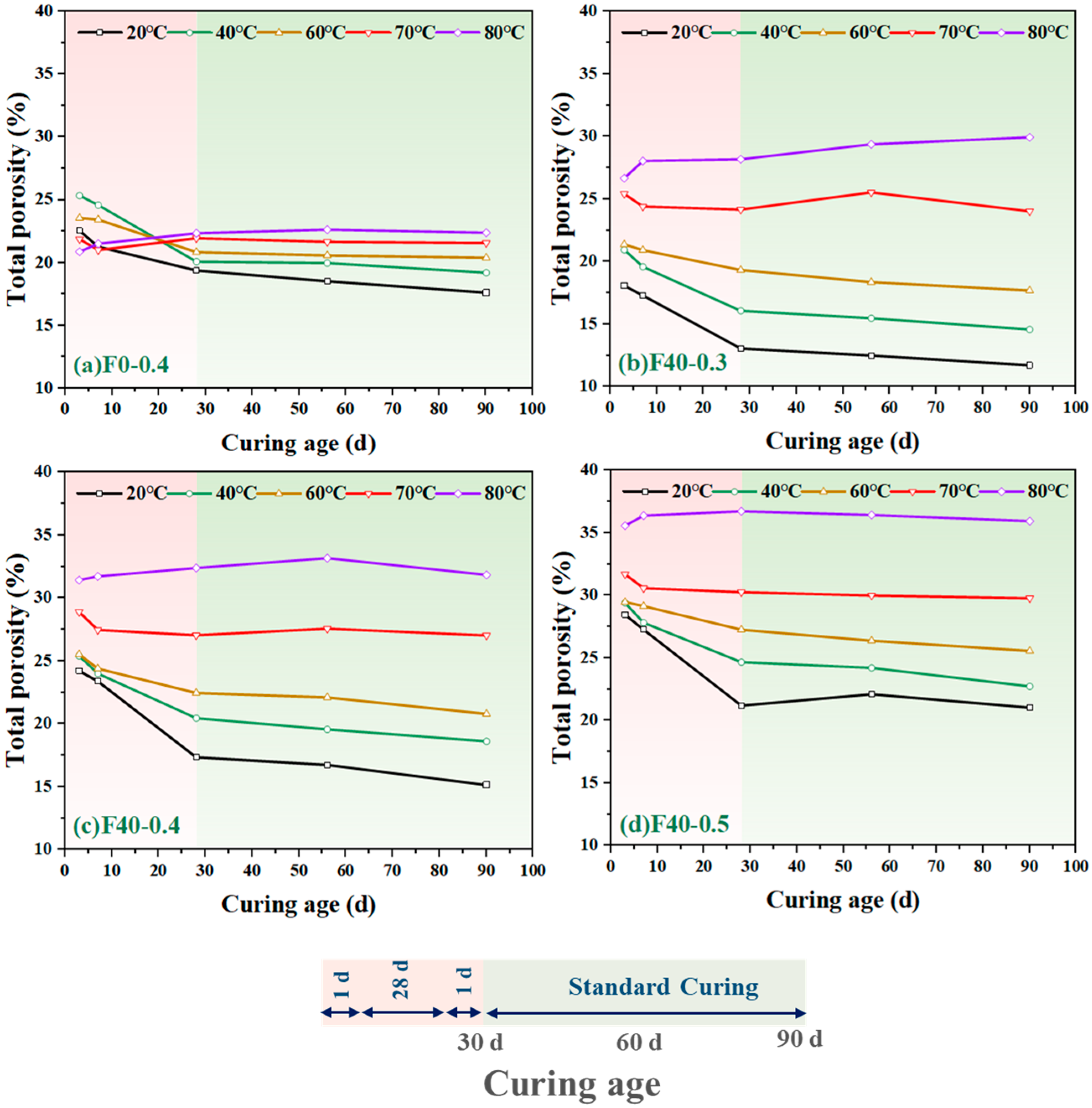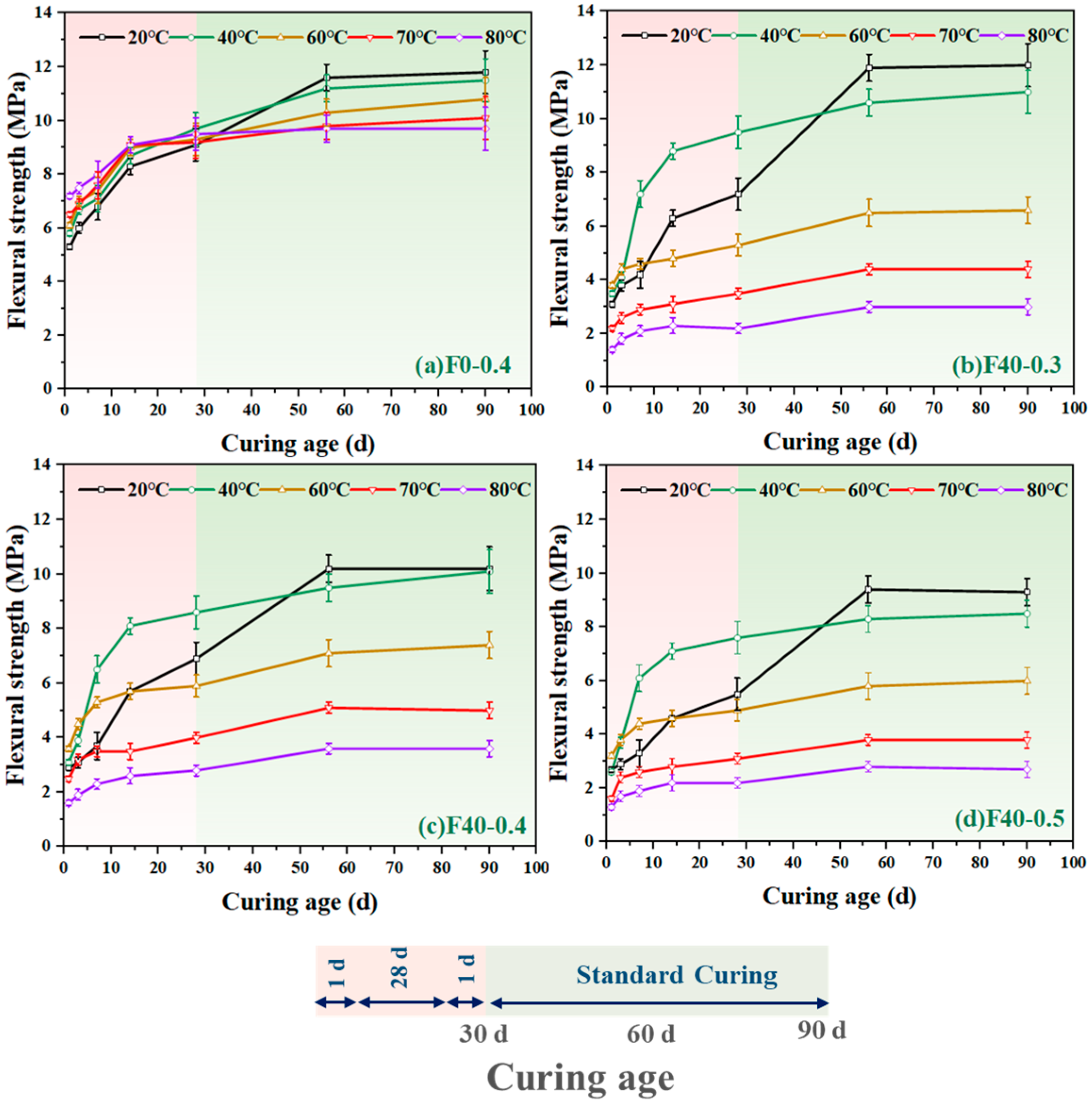 - FA and w/b ratio play modulating roles. FA suppressed later-age expansion at ambient temperature but could enhance expansion stability within the 40–60 °C range. However, at temperatures ≥ 70 °C, FA exacerbated pore coarsening and was detrimental to strength development. Increasing the w/b ratio generally reduced both the expansion ratio and strength but increased the resistance to DEF after high-temperature curing.