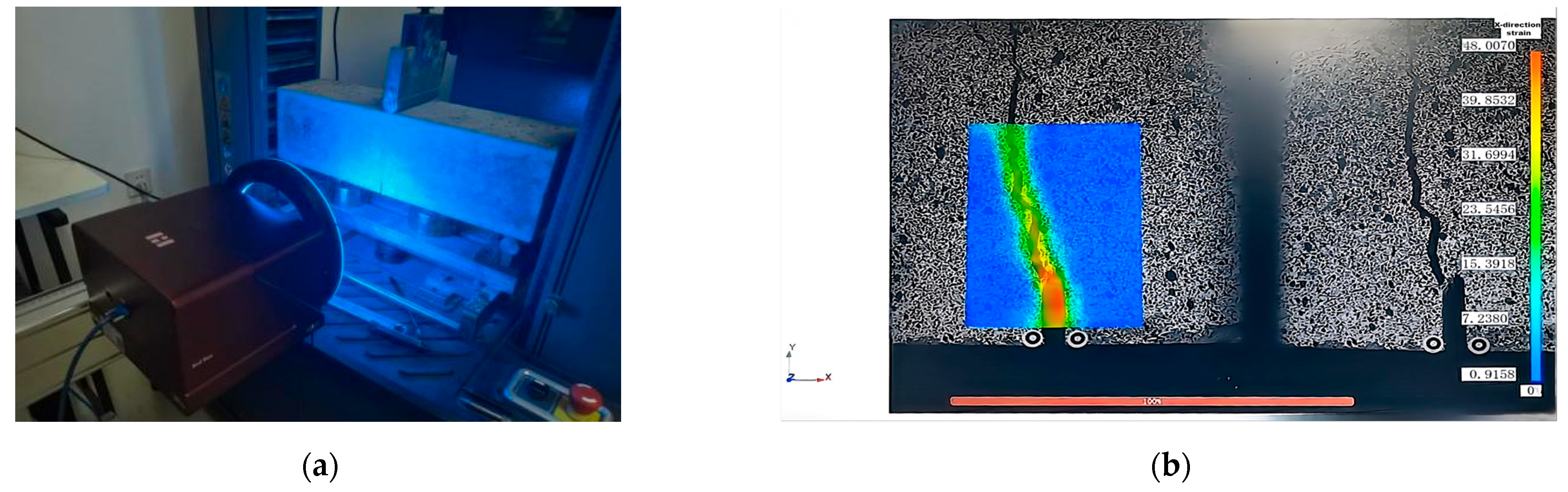 - Tan, Y.; Zhao, S.; Zhou, H.; Zhao, J.; Wu, J. Fracture damage process and mechanism of steel fiber reinforced concrete based on digital image and ultrasonic technology. J. Cem. 2025, 53, 2287–2300. (In Chinese) [Google Scholar] [CrossRef]