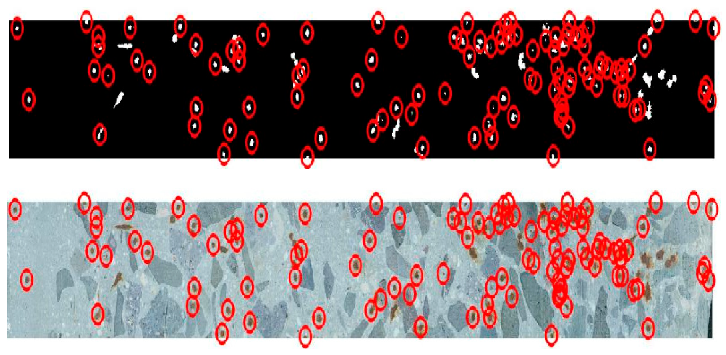 - Matrix background interference. Dark aggregates, pores, or fine cracks in the concrete matrix may exhibit grayscale values similar to fibers under specific lighting conditions. Although the OTSU global threshold method can effectively segment the fibers, it may still cause a small number of false-positive detections in localized areas.