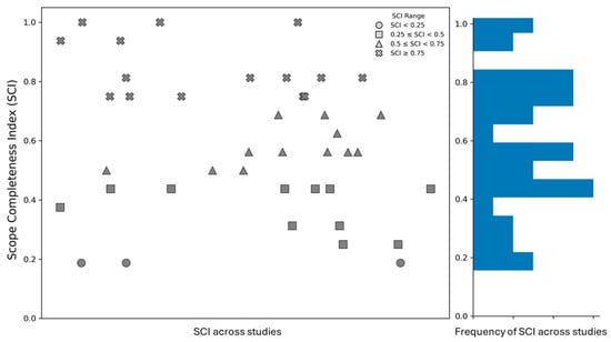 Scope completeness index observed along with frequency of SCI’s across the reviewed studies.