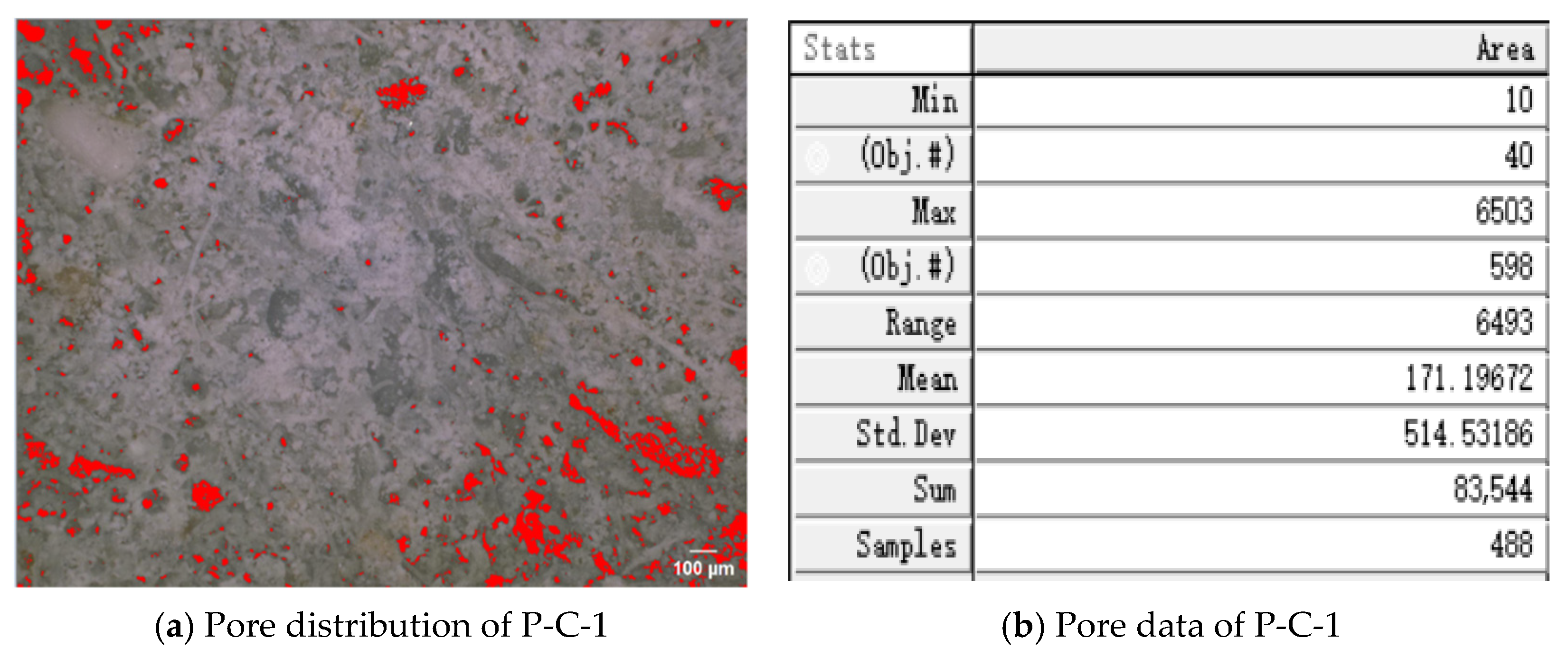 (4) Image analysis of Super Depth of Field (SDF): Using the Keyence VHX-2000 ultra-depth 3D microscope, Keyence Co., Osaka, Japan, to capture images of the sample, calculate the number of pores and porosity of the sample using Image-Pro Plus 6.0.