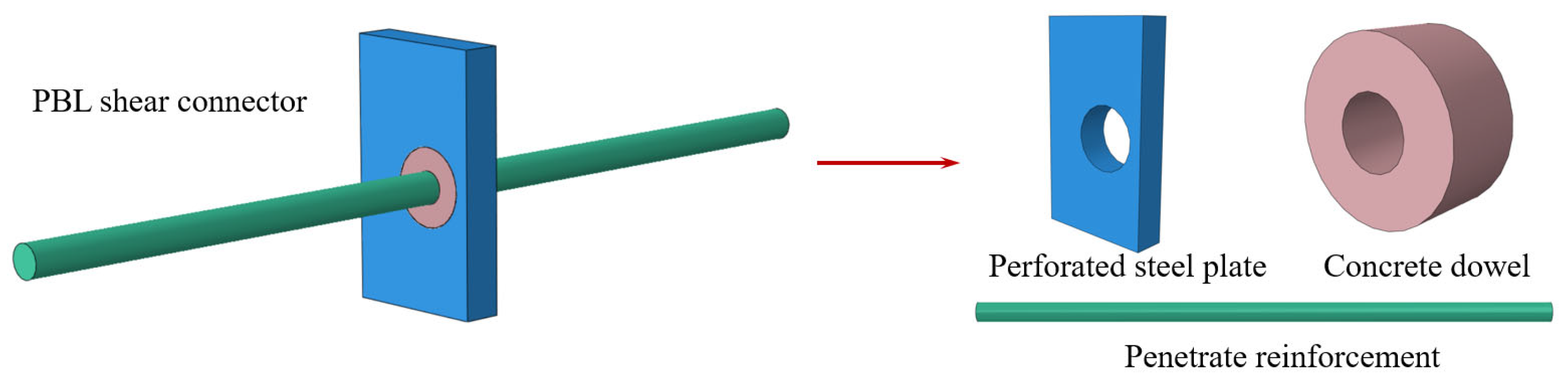 - Zou, Y.; Wang, D. Bearing Capacity Analysis of PBL Shear Connectors Based on Finite Element Method. Highway 2022, 67, 109–113. [Google Scholar]