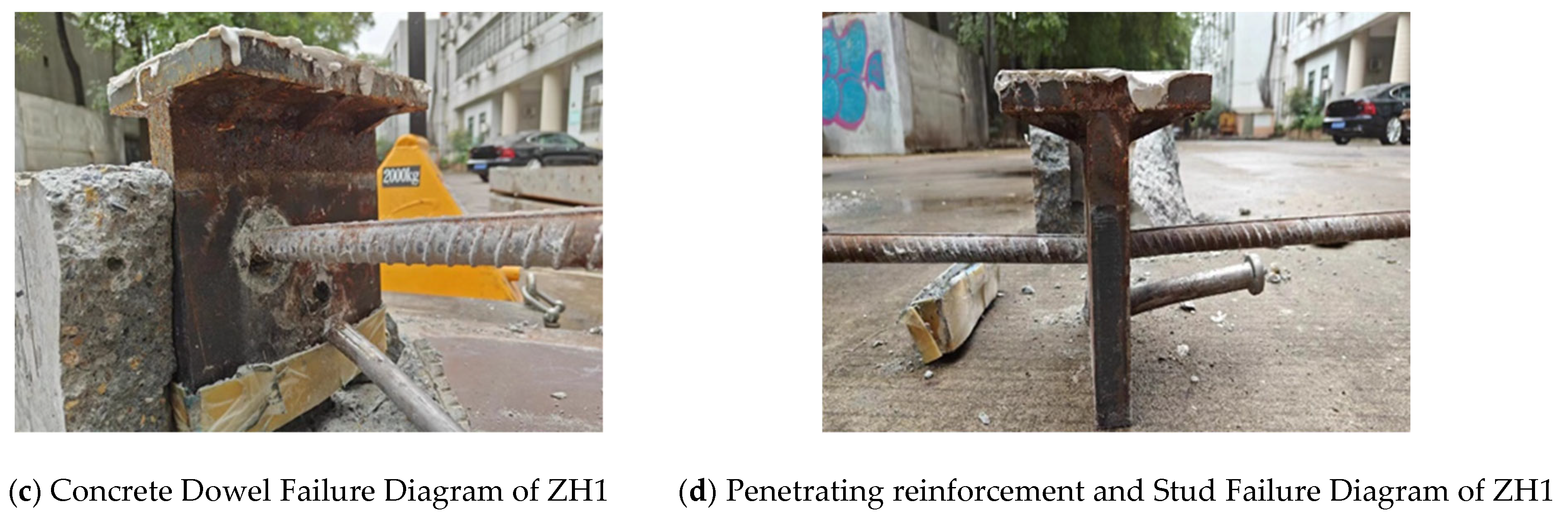 - Mei, G.; Zhou, C.; Wu, S.; Zhang, L.; Xiao, J.; Li, P.; Chen, Z.; Shi, Q.; Hu, J.; Jiang, H. Interfacial Shear Behavior of Novel Connections Between Concrete Bridge Piers and Anti-Overturning Steel Supporting Joists. Buildings 2025, 15, 1299. [Google Scholar] [CrossRef]
