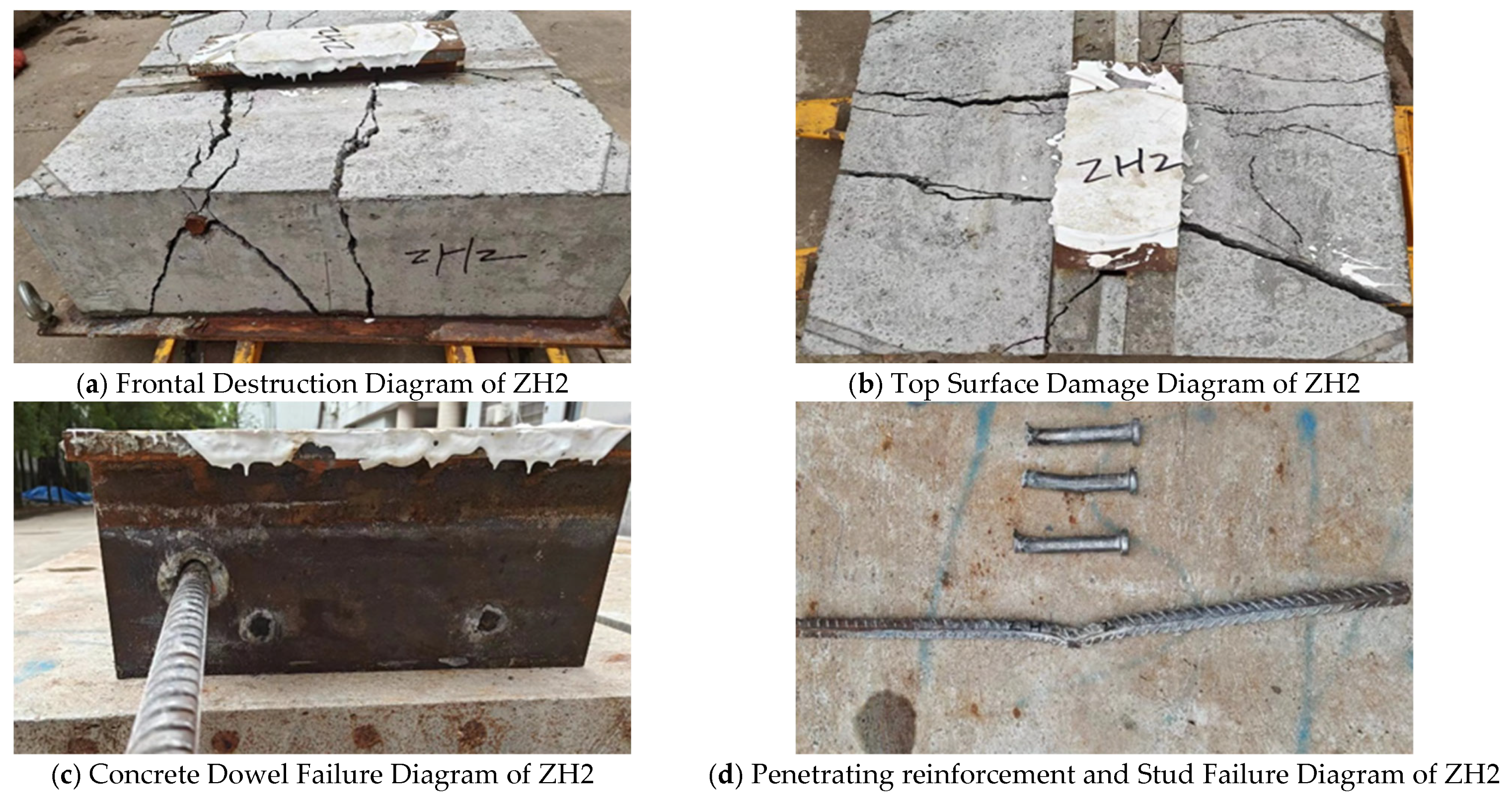 - Jiang, H.; Wu, S.; Zhou, C.; Zhang, L.; Li, P.; Gao, X.; Chen, Z.; Shi, Q.; Hu, J. Experimental and numerical study on interfacial shear behaviors of novel shear connections with epoxy mortar layer between steel and concrete. Structures 2025, 80, 109797. [Google Scholar] [CrossRef]