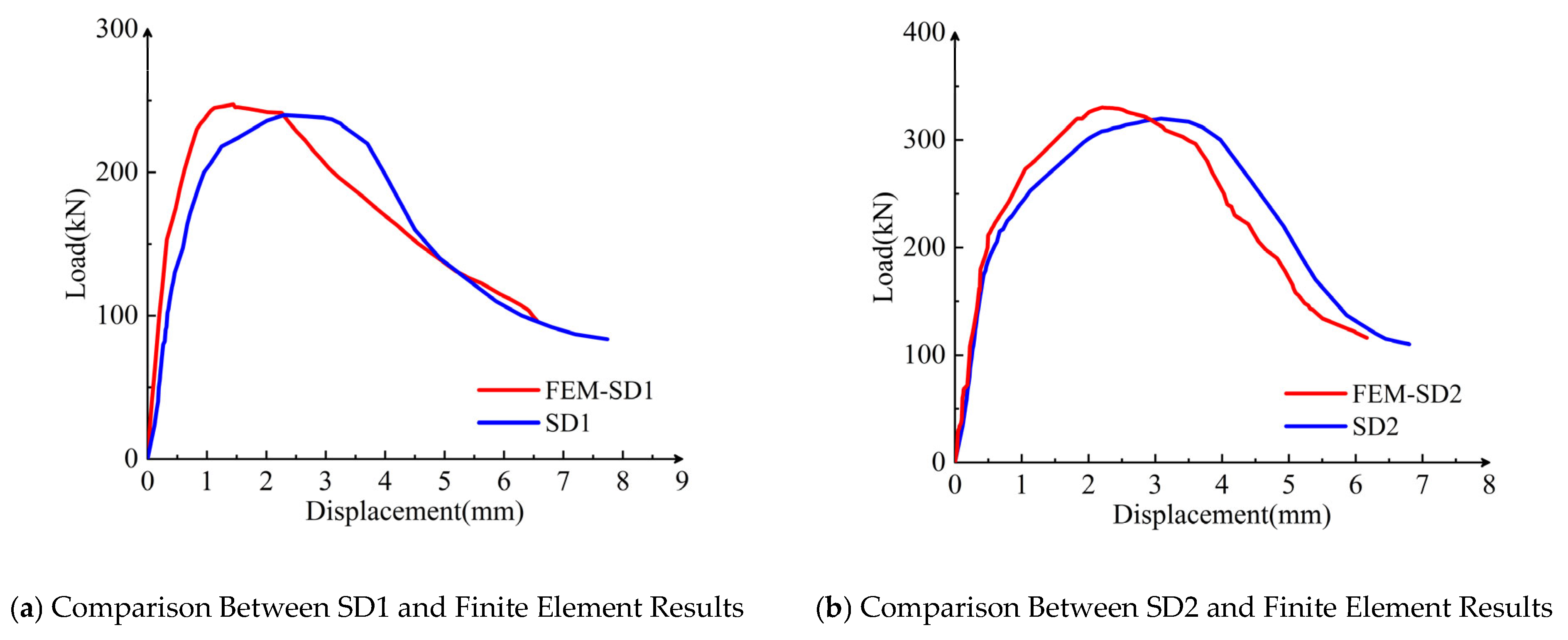 - Tu, W.; Ke, Y.; Shen, R.; Jiang, H.; Zhang, S.; Tian, Y.; Cao, Z. Interfacial shear behavior of PBL deeply embedded in UHPC considering end-bearing effect. J. Constr. Steel Res. 2025, 226, 109242. [Google Scholar] [CrossRef]