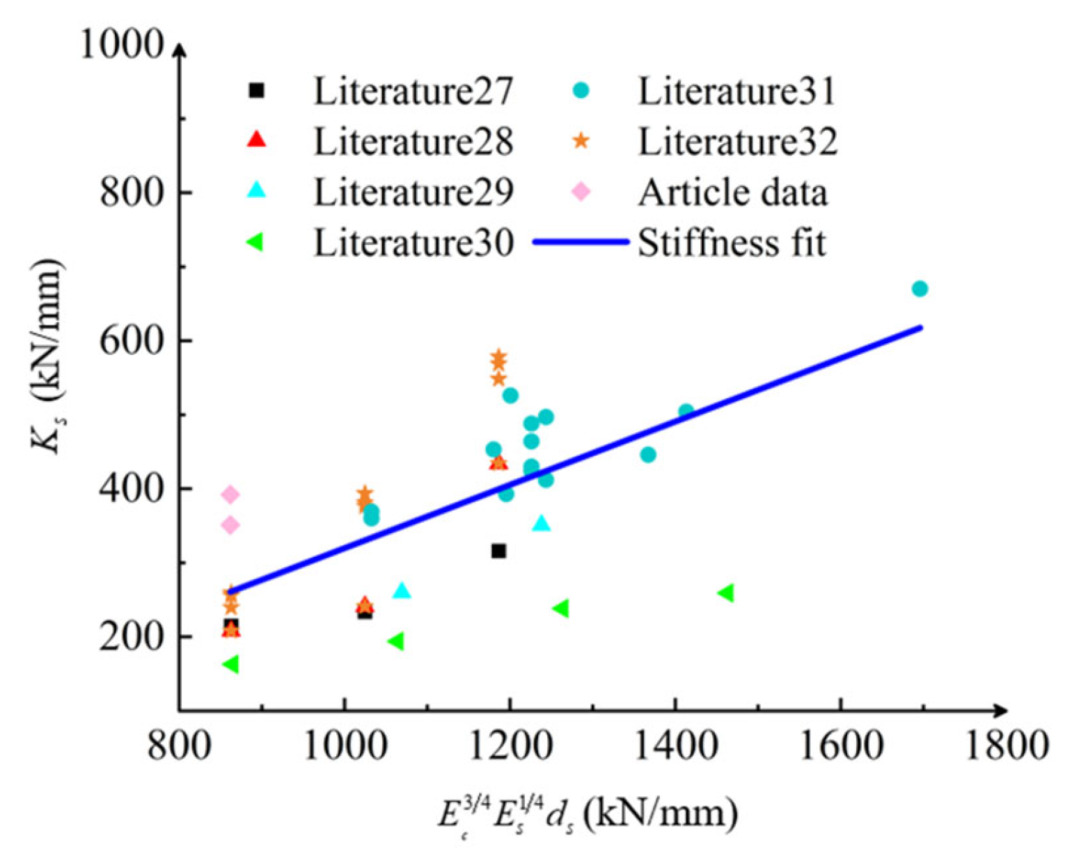 2.1. Calculation and Analysis of Elastic Stiffness for Stud Shear Connectors