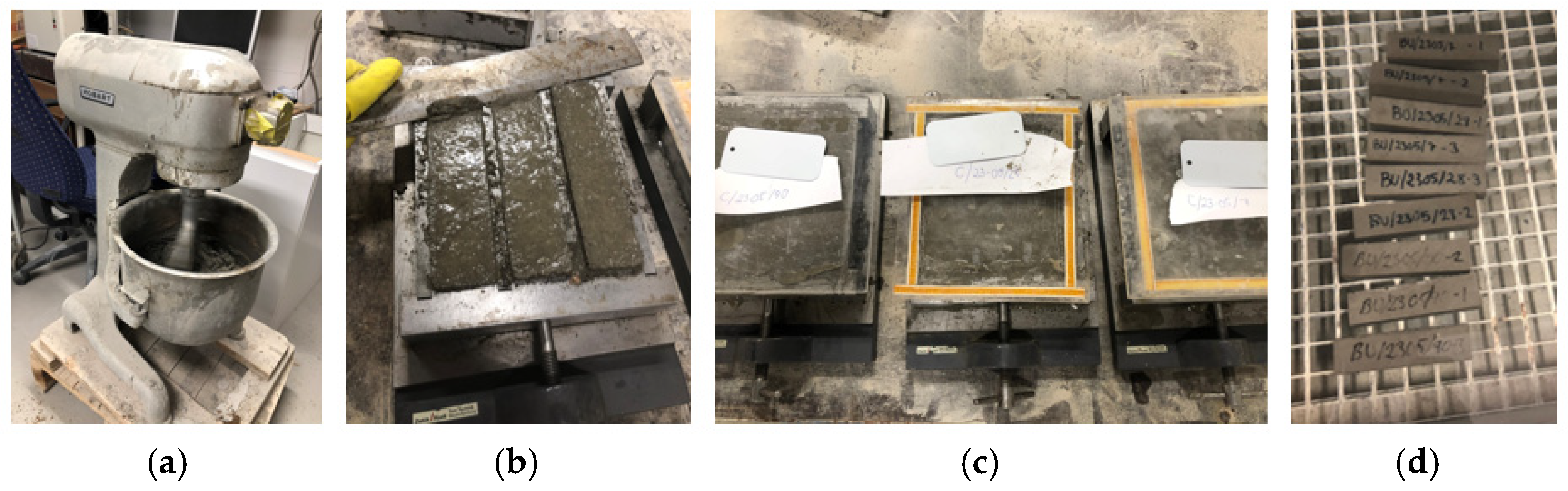 - SS-EN 196-1:2016; Methods of Testing Cement—Part 1: Determination of Strength. Swedish Institute for Standardization: Stockholm, Sweden, 2016.