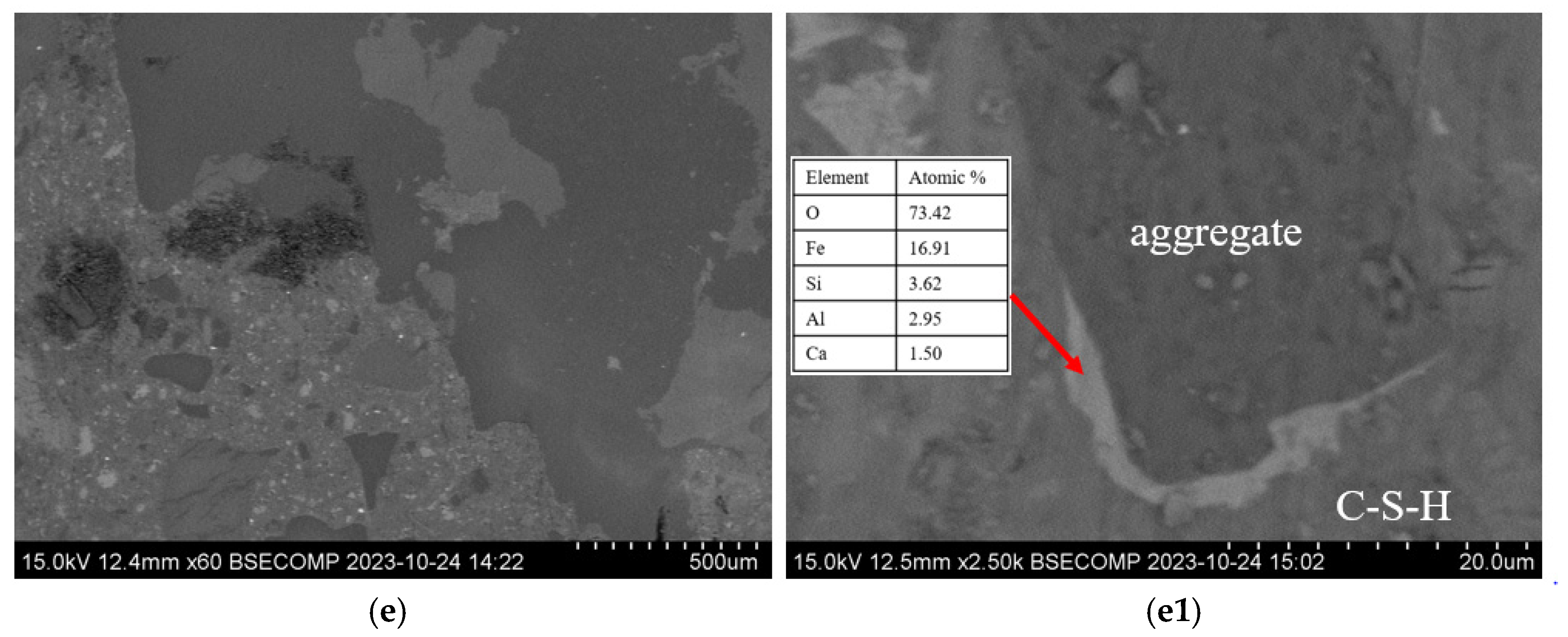 - Li, H.W.; Wang, R.; Wei, M.W.; Lei, N.Z.; Sun, H.X.; Fan, J.J. Mechanical properties and hydration mechanism of high-volume ultra-fine iron ore tailings cementitious materials. Constr. Build. Mater. 2022, 353, 129100. [Google Scholar] [CrossRef]
