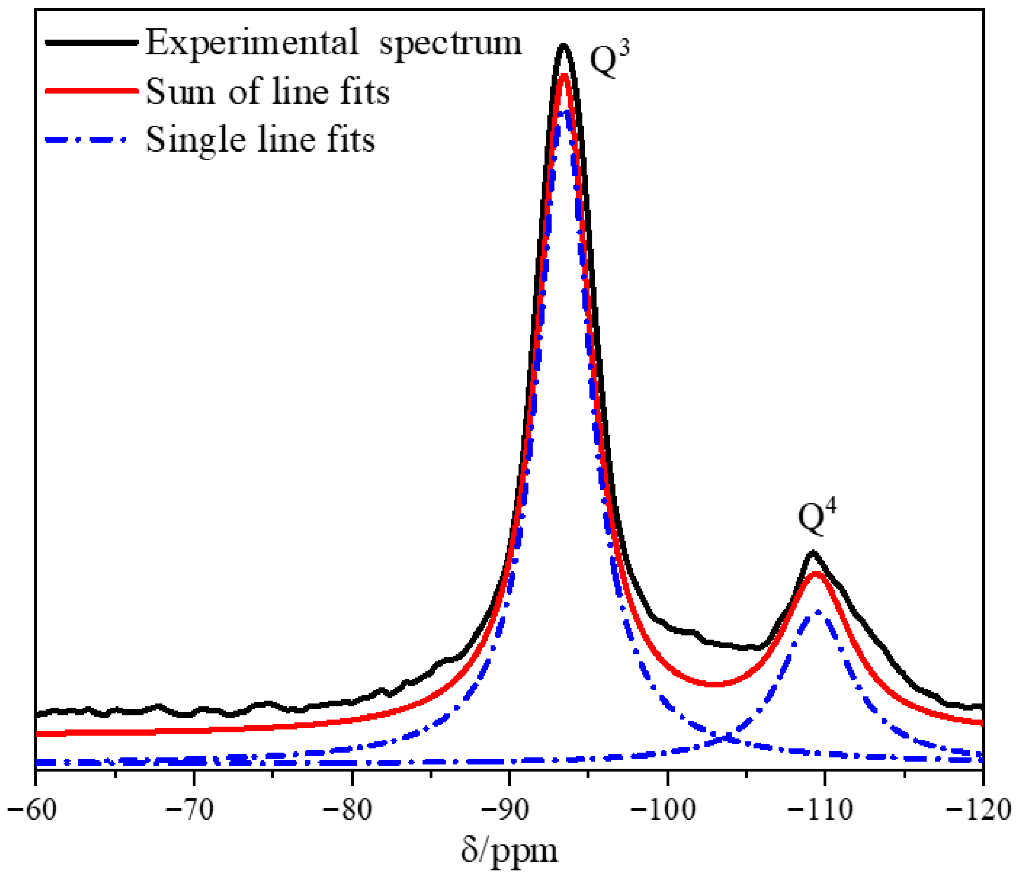 Figure 6. Spectrum of 29Si NMR peak fitting of cemented soil sample.