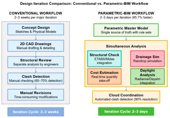 Design Iteration Comparison: Conventional vs. parametric workflow.