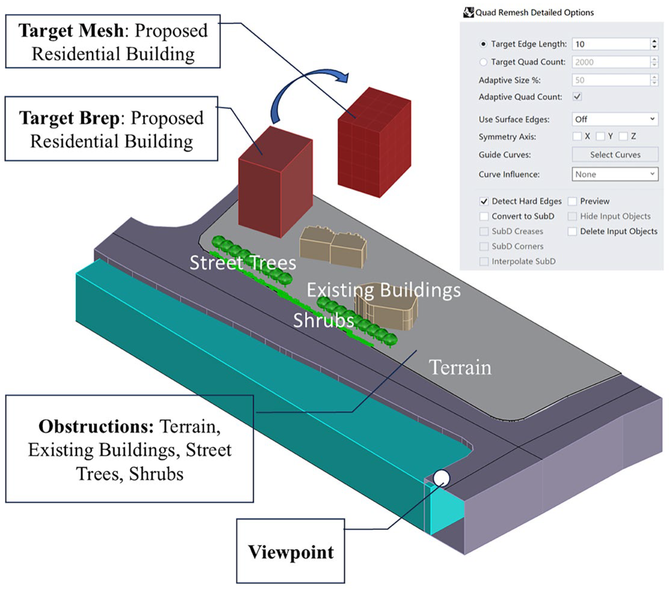 - Propose a Quad-mesh based inverse visibility analysis method using 1 m grids to ensure high-precision visibility quantification;