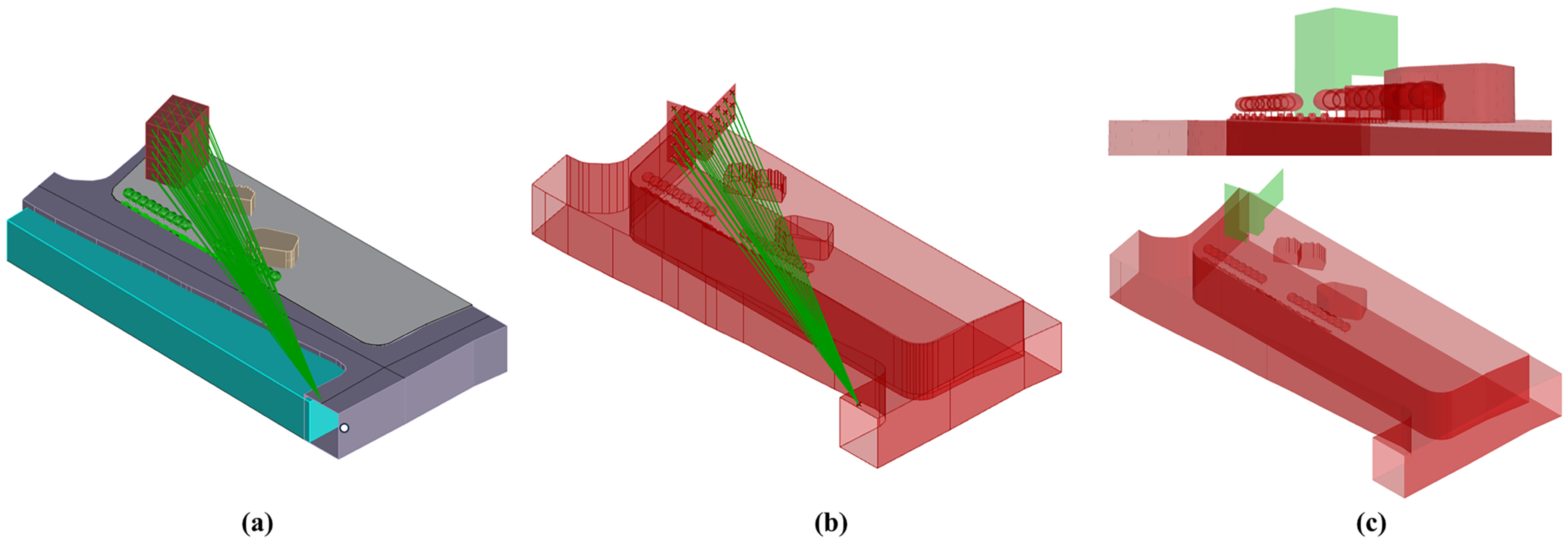 - Type C (Effective Lines of Sight): The remaining rays that encounter no obstructions. These rays maintain their original length and successfully reach the target faces.