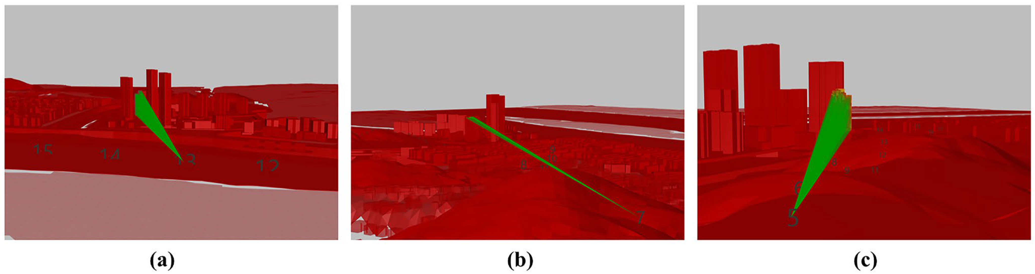 - Type A (Environmentally Occluded): Rays that intersect with any object in the obstruction environment (terrain, surrounding buildings, etc.). These are marked as blocked.
