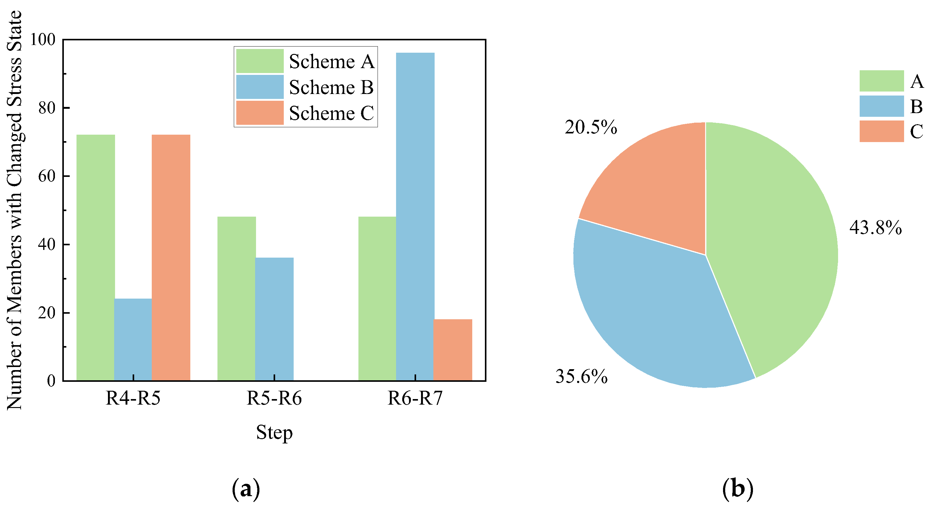 4.4. Proportion of Members with Changed Stress States at Each Construction Stage