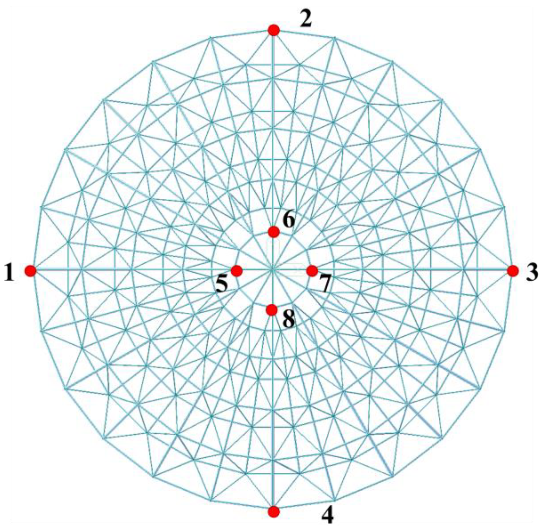 - Sun, G.; Xiao, S.; Wu, J.; Yu, S.; Wei, M.; Qin, J.; Zang, M. Study on the static stability of aluminum alloy single-layer spherical reticulated shell. J. Build. Eng. 2024, 84, 108595. [Google Scholar] [CrossRef]