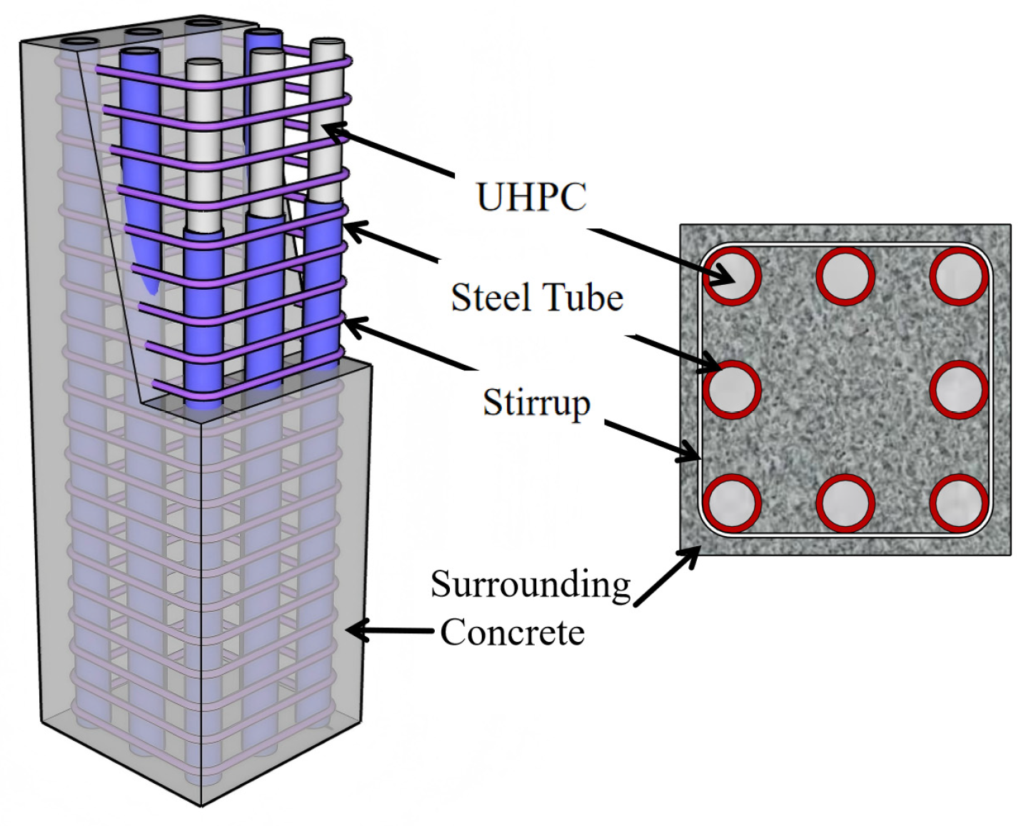 Figure 2. The core innovation lies in replacing conventional longitudinal reinforcement with UHPCFST [