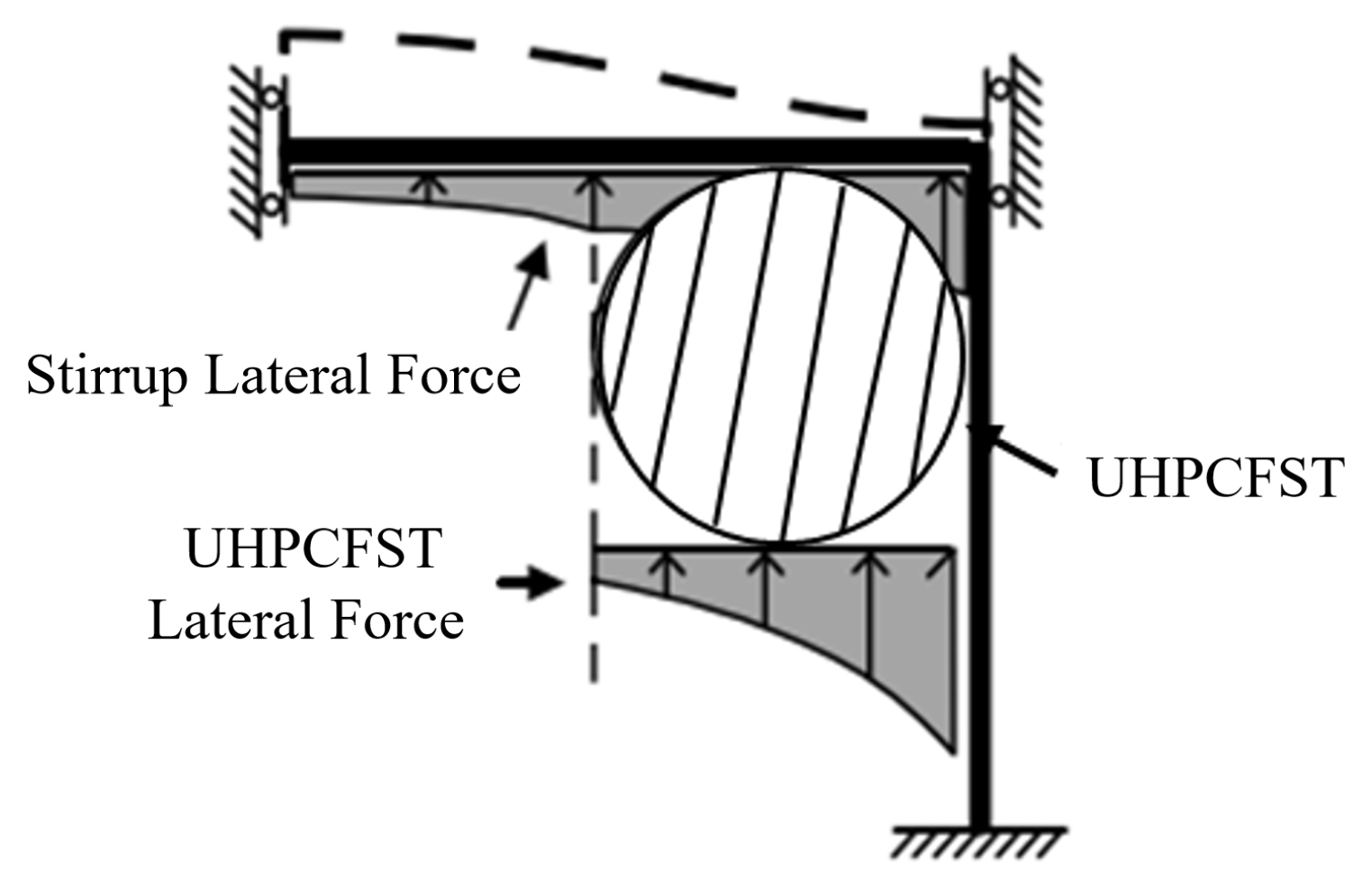Thirdly, it provides a complementary and substitutive effect on stirrup confinement. The circular steel tube provides uniform and efficient circumferential confinement to the internal UHPC. Simultaneously, it can also confine the surrounding concrete to a certain extent, thereby partially replacing or enhancing the role of stirrups, which improves the sectional integrity and seismic performance.