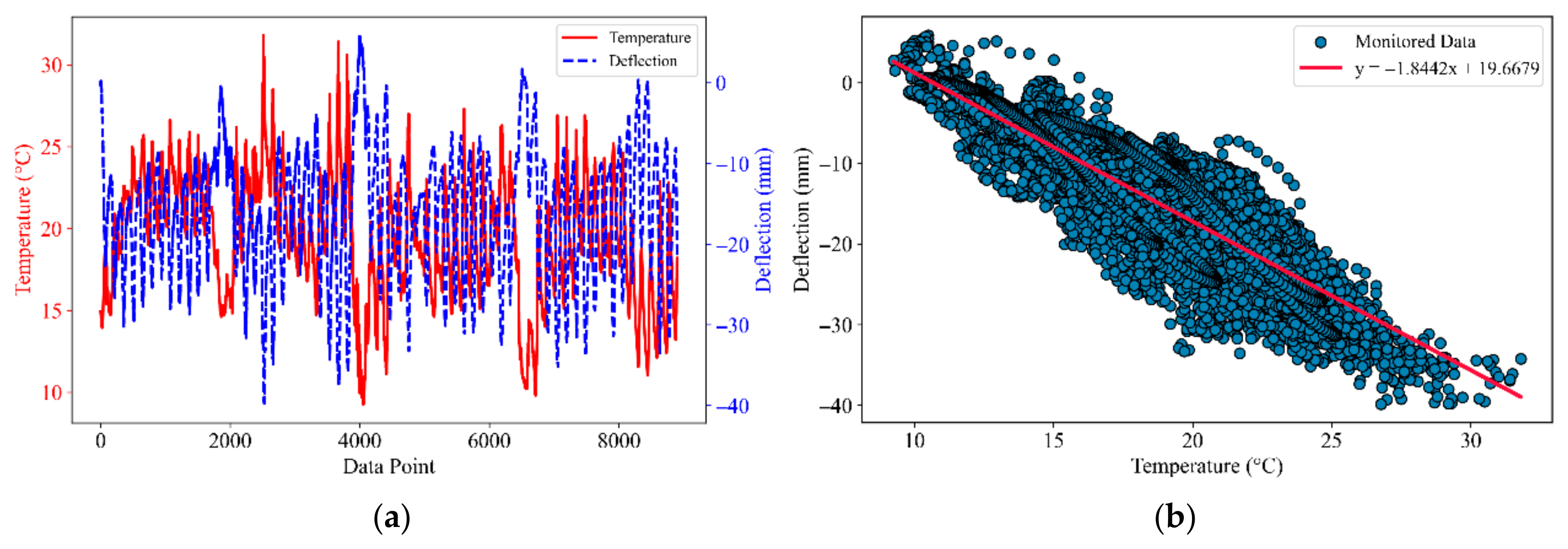 10]—have been widely applied to environmental effect separation and data normalization. However, these methods are generally based on linear or weakly nonlinear assumptions and thus have limited capability in capturing the complex high-order nonlinear and hysteretic relationships between temperature variations and structural responses. In recent years, the rapid development of deep learning has provided transformative tools for addressing complex time-series analysis problems in bridge health monitoring. Deep learning models, represented by recurrent neural networks and their variants [