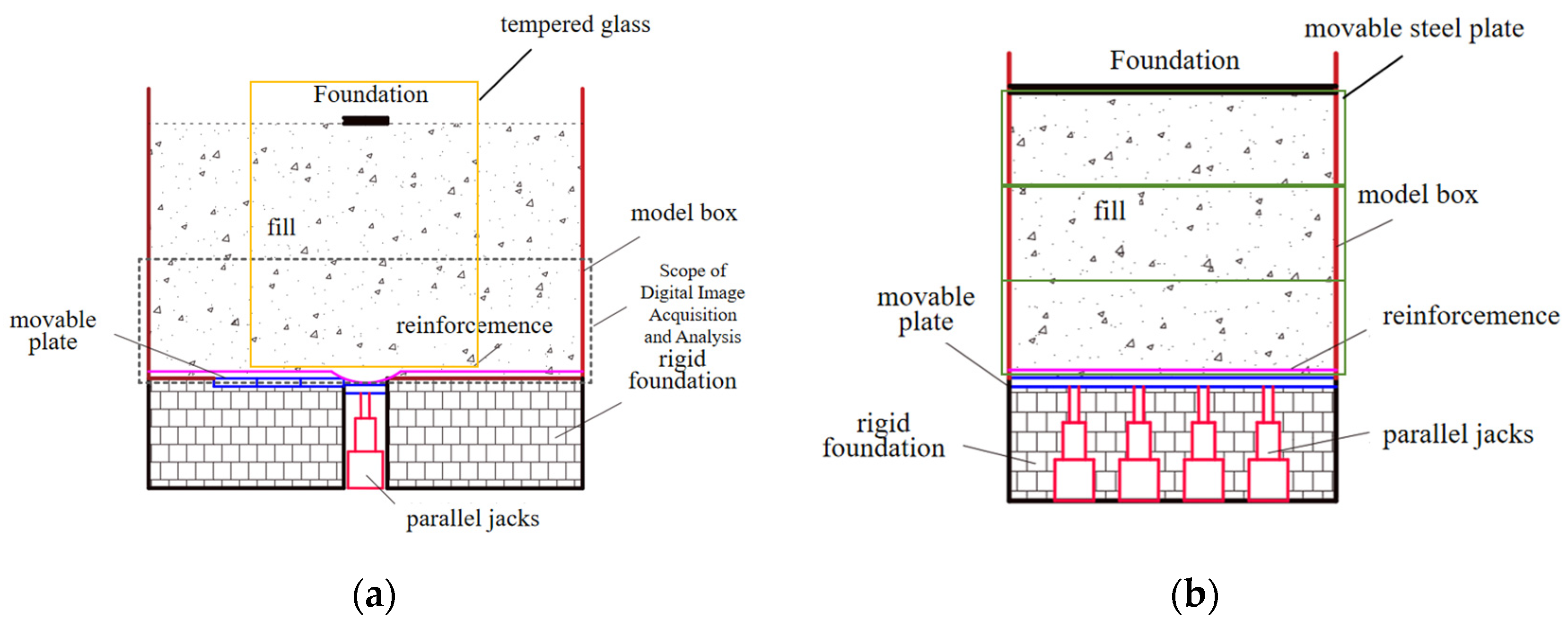 - Layered filling and compaction of sand: Before filling, the model box is marked with scale graduations. Sand is filled in layers, with each layer having a thickness of 10 cm, and compacted using a 20 kg weight. Every 20 cm, the surface is leveled with a flat plate tamper to reduce error.