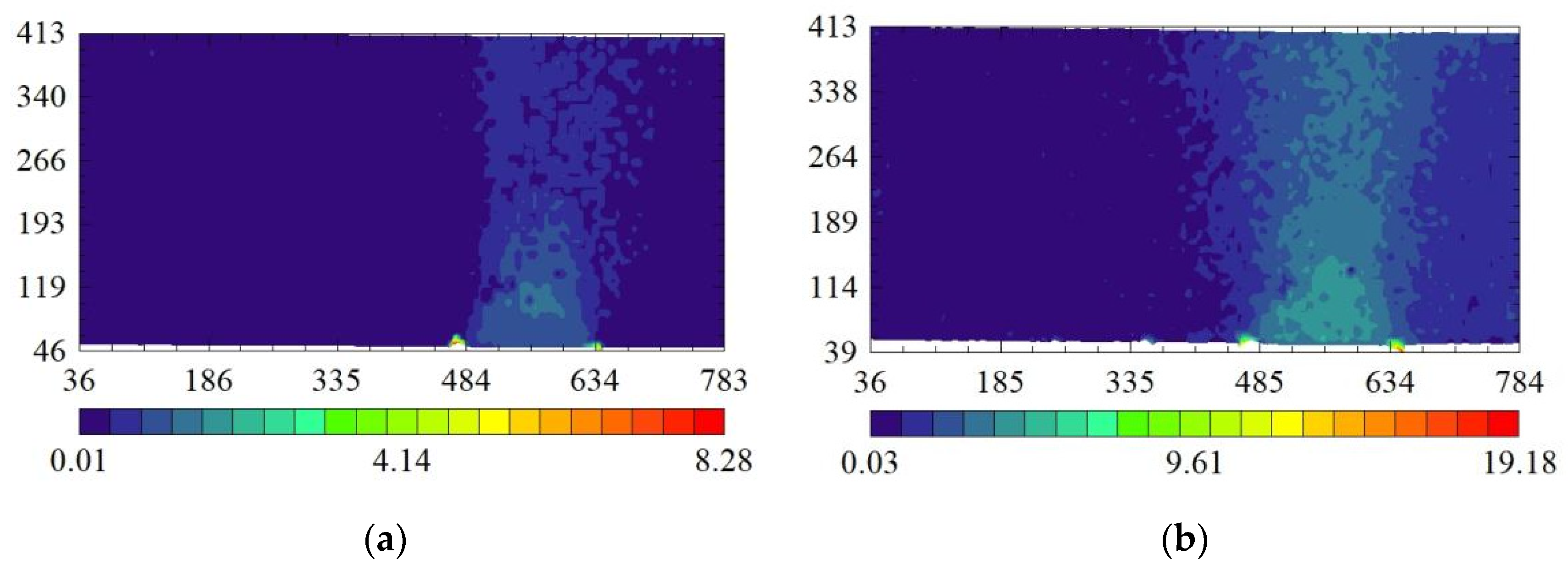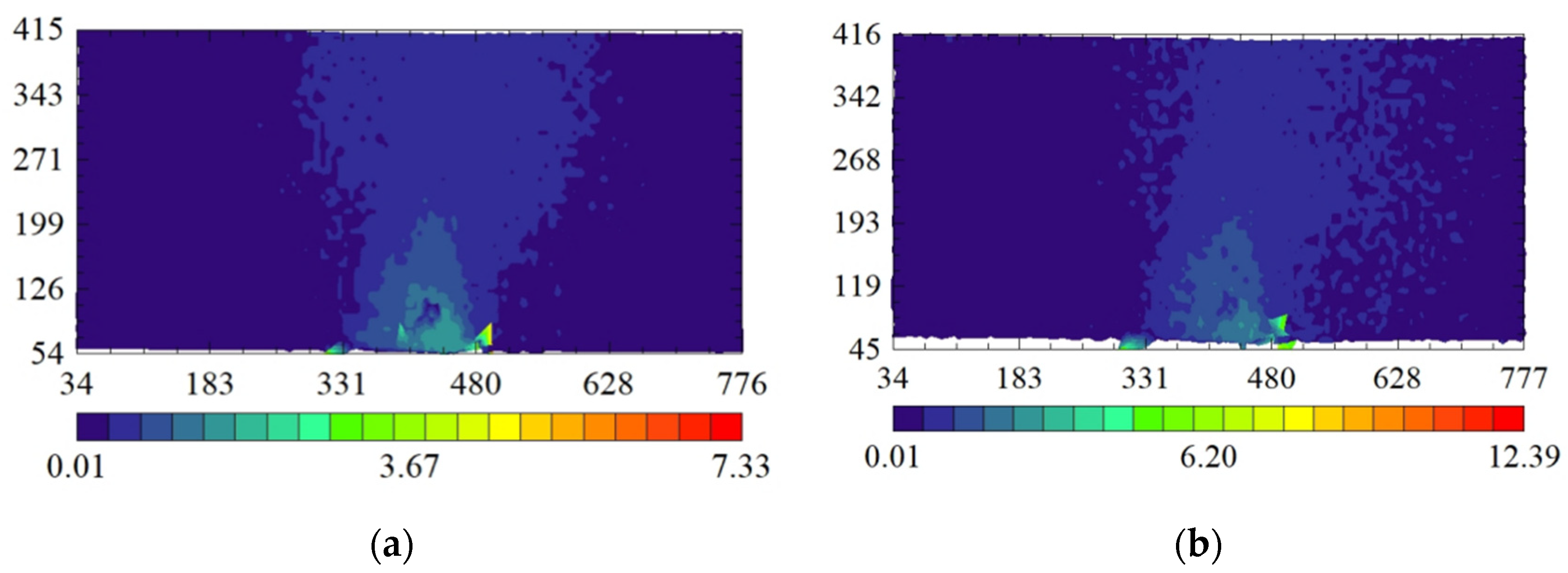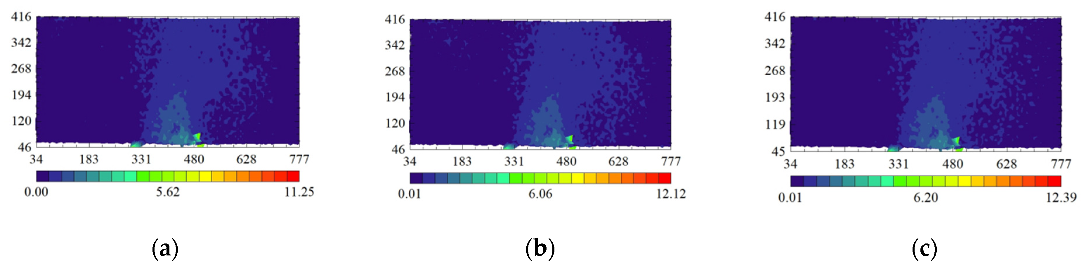 - When the soil cavity is not located directly beneath the foundation center, the ranges of the soil arches on either side of the cavity are not equal, and the difference in range decreases as the load increases. For instance, in Figure 15a, the horizontal distances from the outer arch foot to the middle arch foot are 37.25 mm on one side and 6.21 mm on the other.