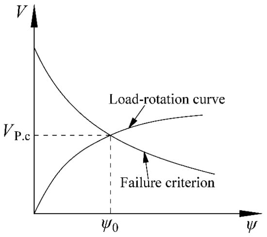 To calculate the punching shear capacity, the load-rotation curve (demand curve) needs to be obtained. At failure, the intersection between the demand curve and the capacity curve (failure criterion) defines the capacity, as depicted in Figure 2.