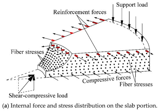 Figure 7 presents the internal force and stress distributions on the slab portion. Thus, the balance equation is obtained as shown in Equation (8).