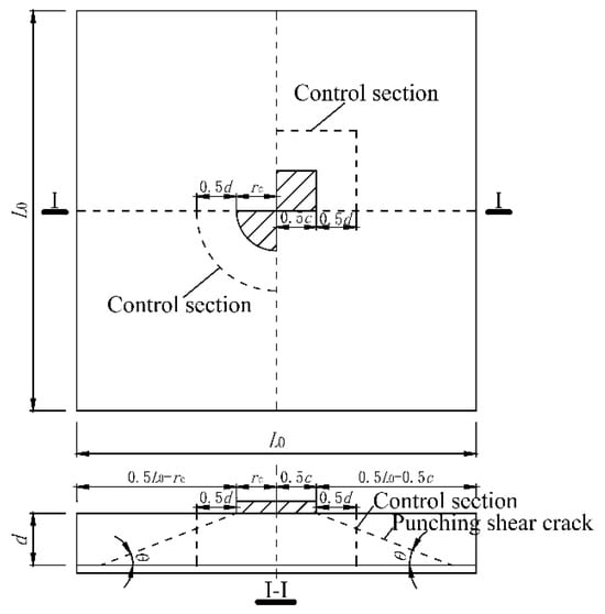 Based on Figure 8, λp can be calculated using Equation (9), where L0 and c are the slab span and the side length of the square loading area, respectively.