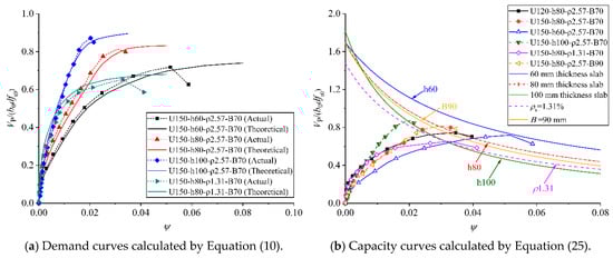 Therefore, the demand curves of square UHPC slabs can be obtained by replacing rq and rc in Equation (10) with rq.eq and rc.eq, respectively.