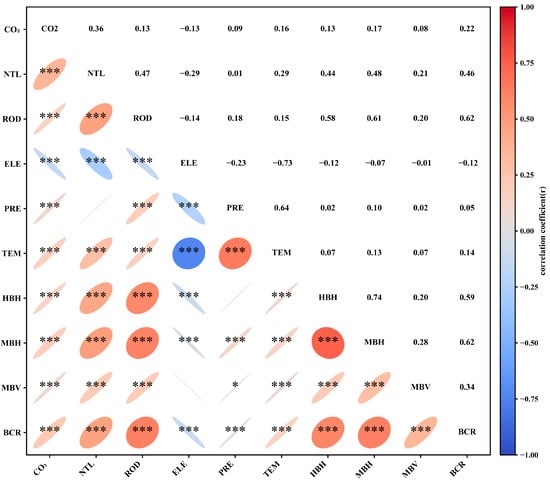 Pearson correlation analysis among variables. * p < 0.05; ** p < 0.01; *** p < 0.001.