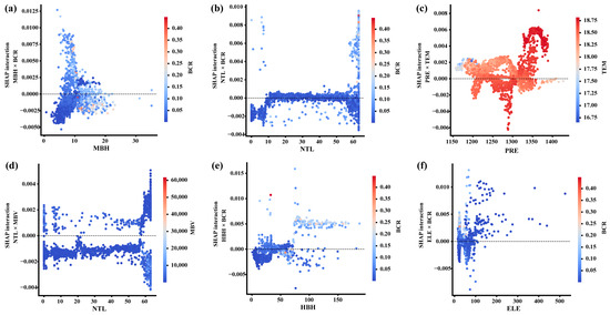 Natural environmental conditions define the biophysical context in which the built environment operates and may modulate the associations between built environment characteristics and ecological resilience. Accordingly, we included elevation (ELE), precipitation (PRE), and air temperature (TEM) as background variables (Table 6) [65,66,67].