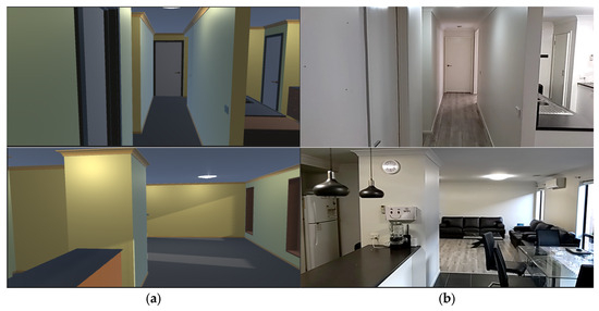 (a) Sample BIM images along the trajectory (b) Corresponding real images.