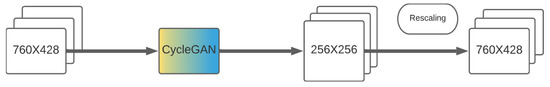 - Zhu, J.-Y.; Park, T.; Isola, P.; Efros, A.A. Unpaired image-to-image translation using cycle-consistent adversarial networks. In Proceedings of the IEEE International Conference on Computer Vision, Venice, Italy, 22–29 October 2017; IEEE: New York, NY, USA, 2017. [Google Scholar]