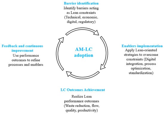 LC prioritizes process standardization, precise sequencing, and predictable results, whereas AM introduces digitally driven, often highly customized fabrication processes with distinct material and timing constraints [45,46]. These differences create integration challenges; for example, reported constraints on AM build speed, layer-dependent material behavior, and post-processing requirements can disrupt takt-based scheduling and pull-driven workflows central to Lean practice [45,47].
