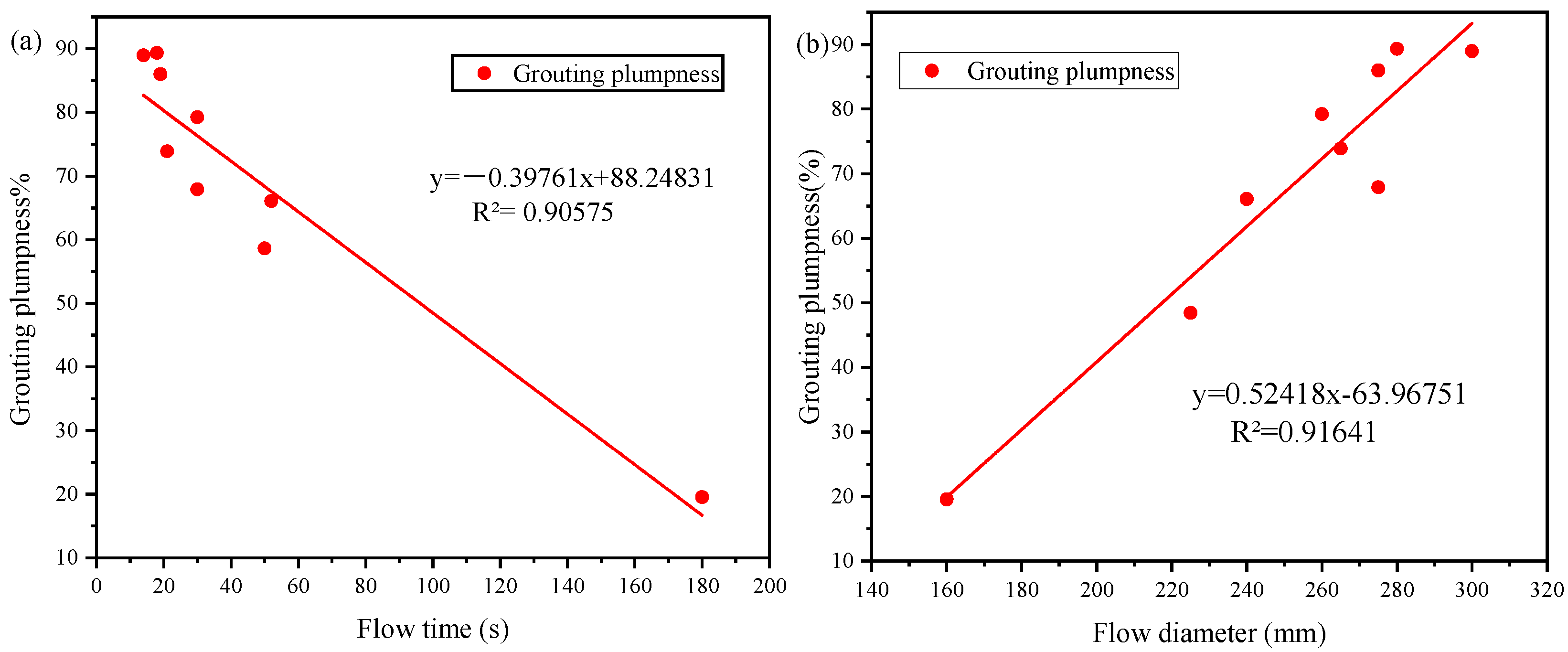 - Flow diameter should be higher than 230 mm to ensure that the average grouting plumpness of FC was above 80%. The result can be directly applied to the optimization and control of grouting mixture proportions in the field.