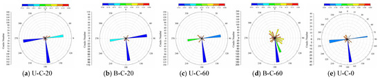 Crack orientation and quantity distribution diagram of U-C and B-C specimens.